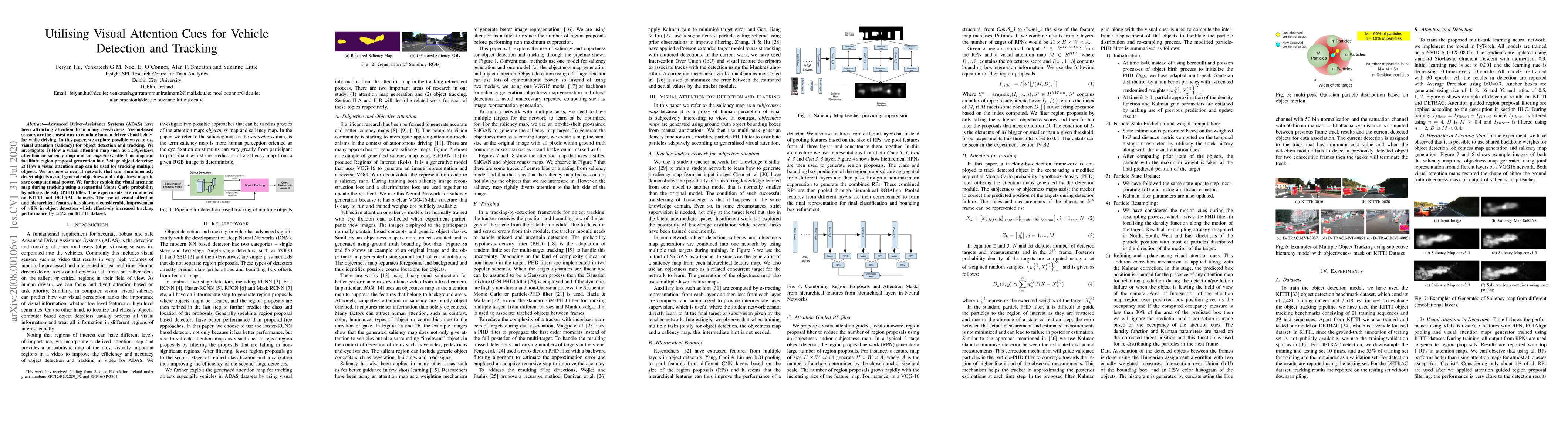 Advanced Driver-Assistance Systems (ADAS) have been attracting attention from many researchers. Vision-based sensors are the closest way to emulate human driver visual behavior while driving. In this paper, we explore possible ways to use visual attention (saliency) for object detection and tracking. We investigate: 1) How a visual attention map such as a \emph{subjectness} attention or saliency map and an \emph{objectness} attention map can facilitate region proposal generation in a 2-stage object detector; 2) How a visual attention map can be used for tracking multiple objects. We propose a neural network that can simultaneously detect objects as and generate objectness and subjectness maps to save computational power. We further exploit the visual attention map during tracking using a sequential Monte Carlo probability hypothesis density (PHD) filter. The experiments are conducted on KITTI and DETRAC datasets. The use of visual attention and hierarchical features has shown a considerable improvement of $\approx$8\% in object detection which effectively increased tracking performance by $\approx$4\% on KITTI dataset.