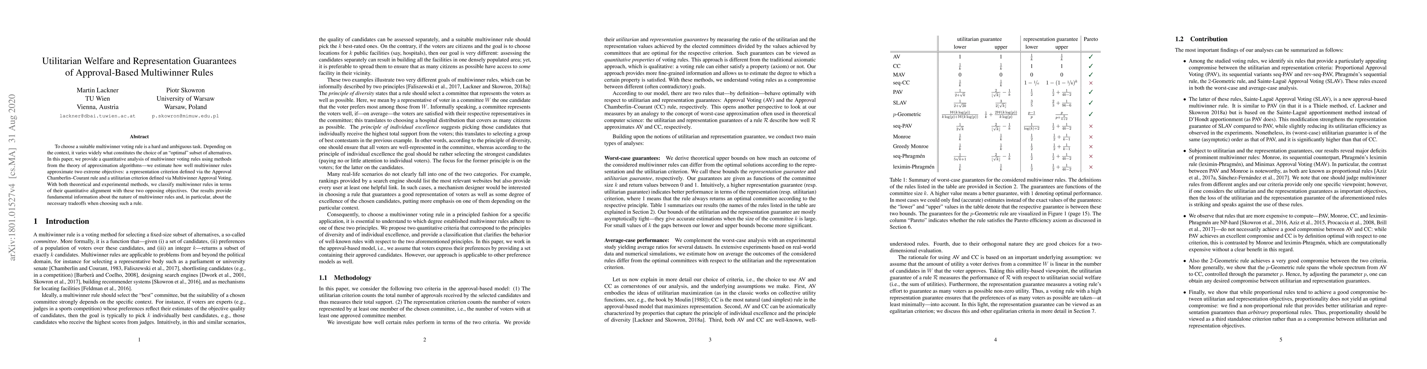 The research uses quantitative analysis of multiwinner voting rules, employing methods from approximation algorithms theory to estimate how well these rules approximate two extreme objectives: a representation criterion (Approval Chamberlin-Courant) and a utilitarian criterion (Multiwinner Approval Voting). Both theoretical and experimental methods are used to classify multiwinner rules based on their alignment with these objectives.