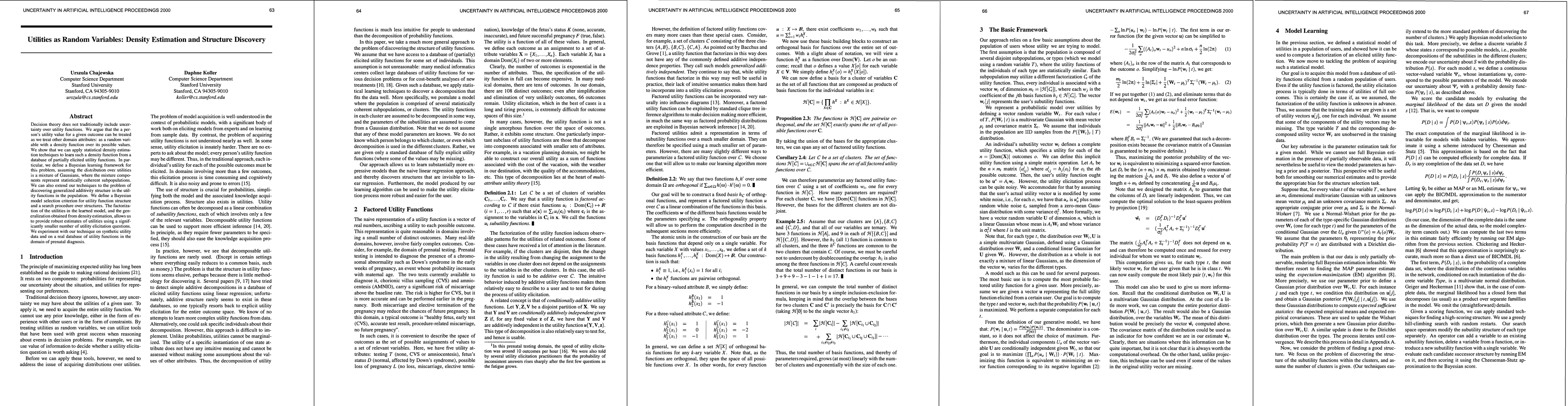 Decision theory does not traditionally include uncertainty over utility functions. We argue that the a person's utility value for a given outcome can be treated as we treat other domain attributes: as a random variable with a density function over its possible values. We show that we can apply statistical density estimation techniques to learn such a density function from a database of partially elicited utility functions. In particular, we define a Bayesian learning framework for this problem, assuming the distribution over utilities is a mixture of Gaussians, where the mixture components represent statistically coherent subpopulations. We can also extend our techniques to the problem of discovering generalized additivity structure in the utility functions in the population. We define a Bayesian model selection criterion for utility function structure and a search procedure over structures. The factorization of the utilities in the learned model, and the generalization obtained from density estimation, allows us to provide robust estimates of utilities using a significantly smaller number of utility elicitation questions. We experiment with our technique on synthetic utility data and on a real database of utility functions in the domain of prenatal diagnosis.