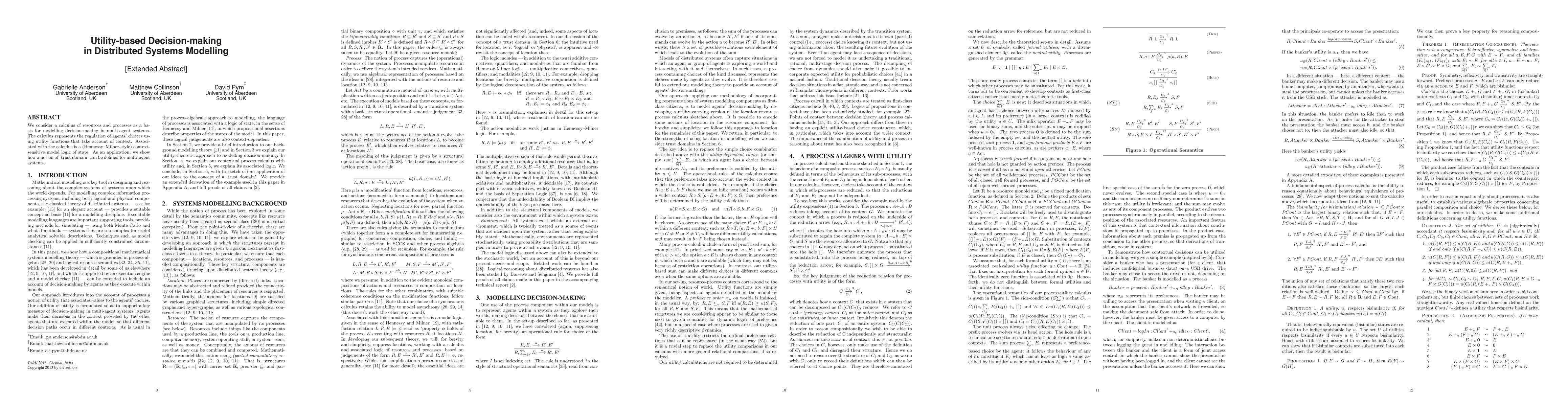 We consider a calculus of resources and processes as a basis for modelling decision-making in multi-agent systems. The calculus represents the regulation of agents' choices using utility functions that take account of context. Associated with the calculus is a (Hennessy Milner-style) context sensitive modal logic of state. As an application, we show how a notion of `trust domain' can be defined for multi-agent systems.