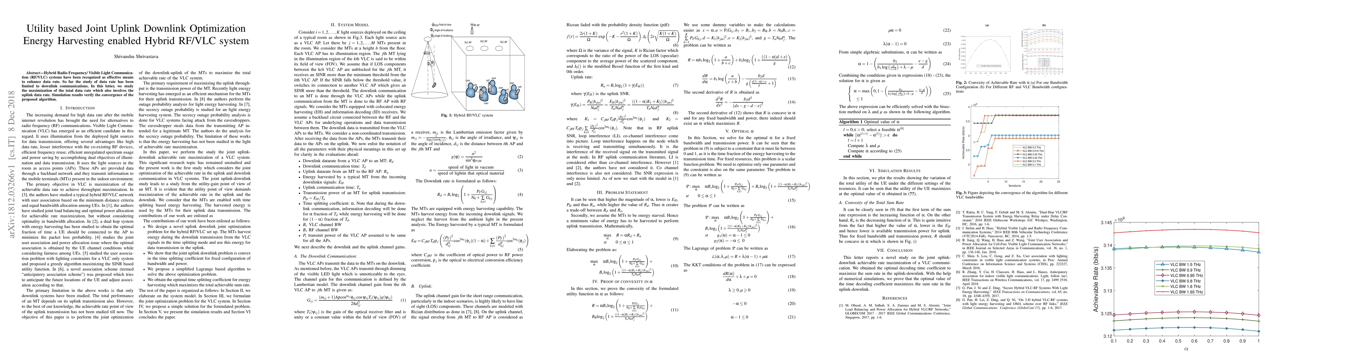 A new algorithm optimizes data rate in hybrid RF/VLC systems for both uplink and downlink, improving overall system efficiency. Simulation results show the convergence of the proposed method, enhancing the potential of these systems.