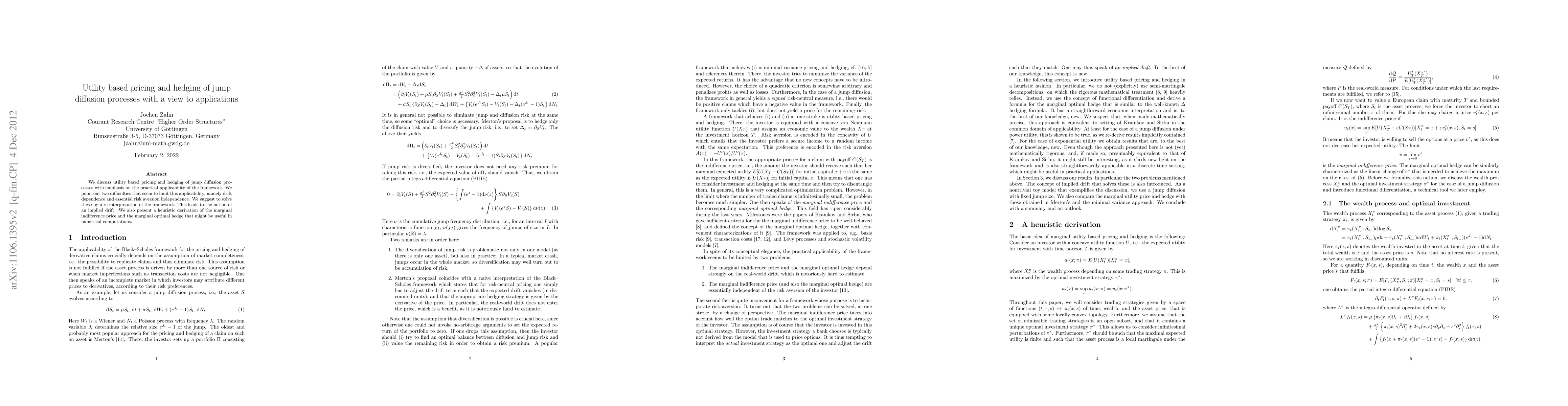 This paper proposes a utility-based pricing framework for jump diffusion processes, addressing limitations of previous approaches and introducing the concept of an implied drift to improve practical applicability.