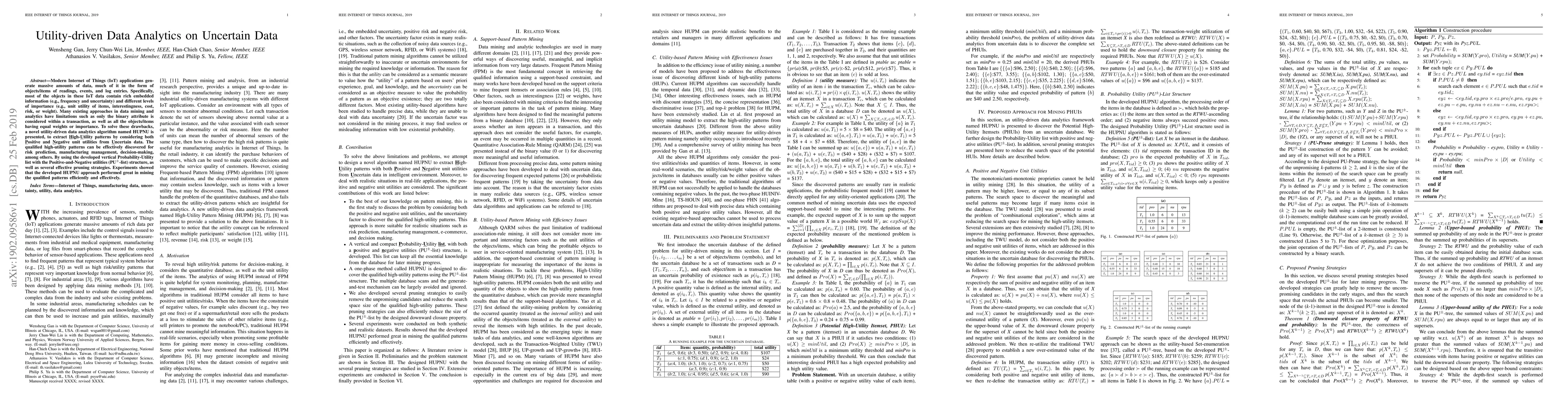 Modern Internet of Things (IoT) applications generate massive amounts of data, much of it in the form of objects/items of readings, events, and log entries. Specifically, most of the objects in these IoT data contain rich embedded information (e.g., frequency and uncertainty) and different level of importance (e.g., unit utility of items, interestingness, cost, risk, or weight). Many existing approaches in data mining and analytics have limitations such as only the binary attribute is considered within a transaction, as well as all the objects/items having equal weights or importance. To solve these drawbacks, a novel utility-driven data analytics algorithm named HUPNU is presented, to extract High-Utility patterns by considering both Positive and Negative unit utilities from Uncertain data. The qualified high-utility patterns can be effectively discovered for risk prediction, manufacturing management, decision-making, among others. By using the developed vertical Probability-Utility list with the Positive-and-Negative utilities structure, as well as several effective pruning strategies. Experiments showed that the developed HUPNU approach performed great in mining the qualified patterns efficiently and effectively.