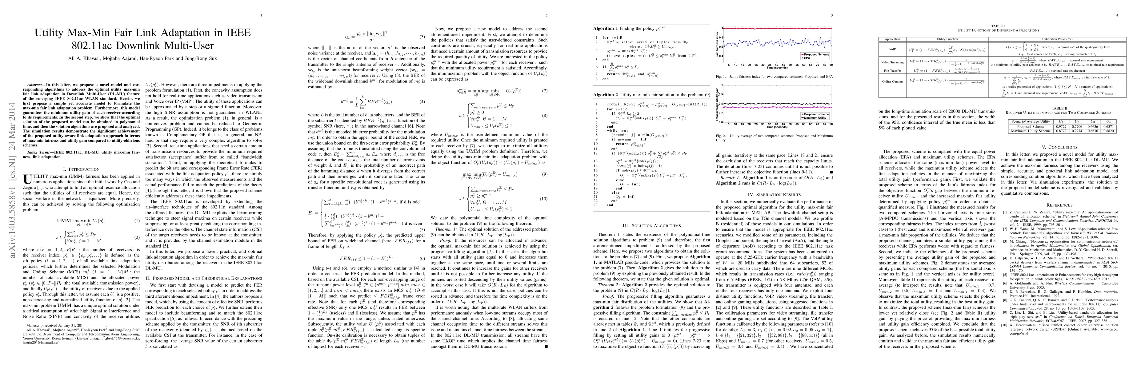This paper proposes a novel model and algorithms for optimal utility max-min fair link adaptation in IEEE 802.11ac Downlink Multi-User environments, ensuring minimum utility gain for each receiver. The proposed model's optimal solution is obtained in polynomial time, achieving better fairness and utility gain compared to existing methods.