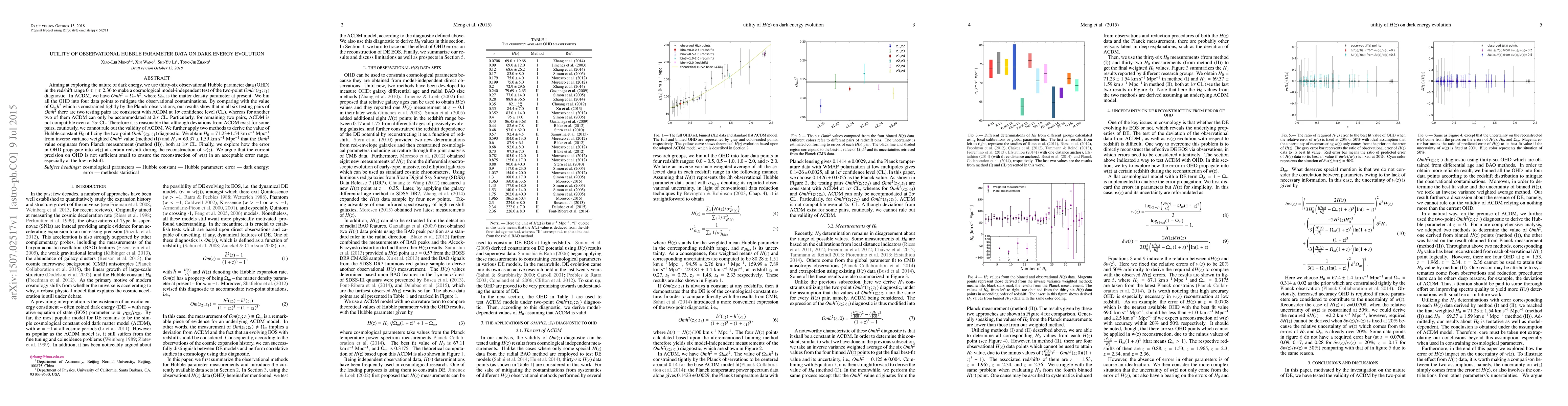 This paper investigates the nature of dark energy using observational Hubble parameter data (OHD) and tests the cosmological model-independent two-point $Omh^2$ diagnostic. Results show that while some pairs of $Omh^2$ are consistent with the $\Lambda$CDM model, deviations exist, but $\Lambda$CDM cannot be fully ruled out. The study also derives $H_0$ values and discusses the limitations of current OHD precision in reconstructing the dark energy equation of state.