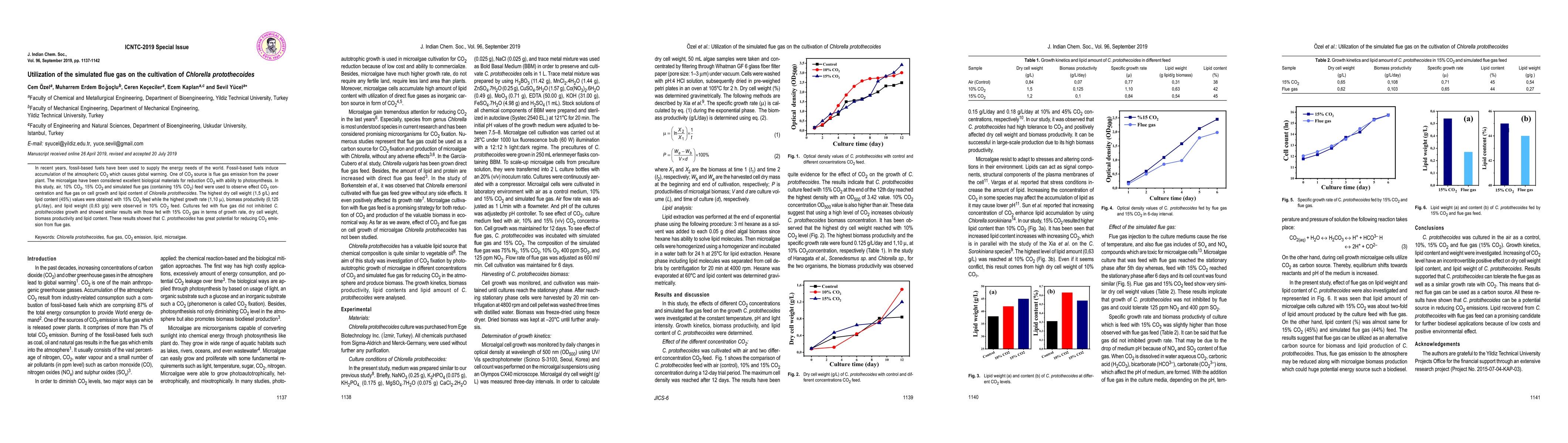 This study investigates the effect of different CO2 concentrations, including simulated flue gas, on the growth and lipid content of Chlorella protothecoides. Results show that C. protothecoides effectively utilizes flue gas for growth, achieving similar outcomes to cultures with 15% CO2, indicating its potential for CO2 reduction from power plant emissions.