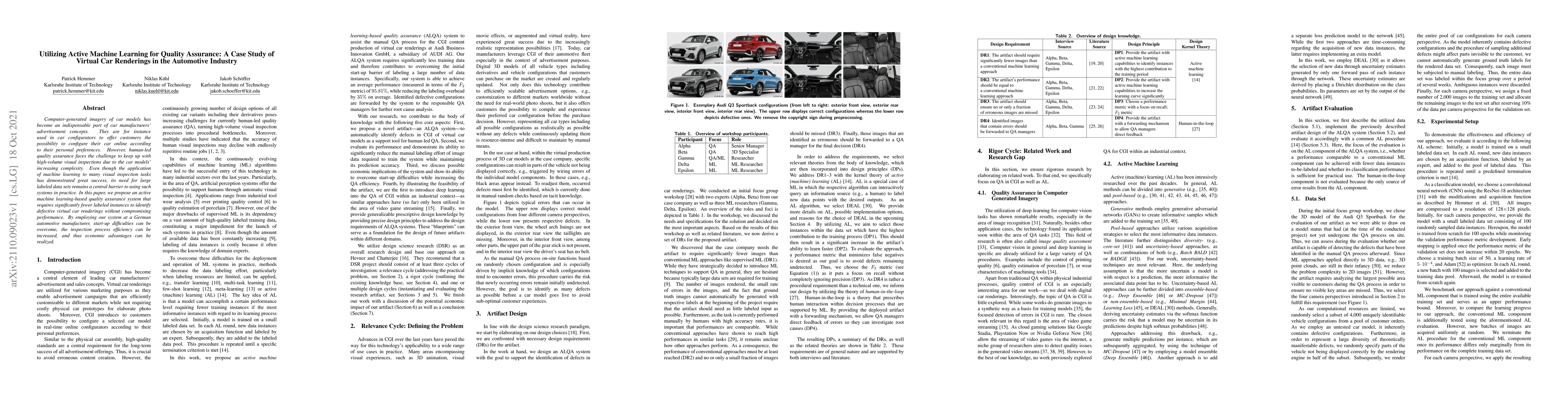 A new active machine learning system is proposed to improve quality assurance for virtual car renderings in the automotive industry, requiring fewer labeled instances than traditional methods while maintaining performance.