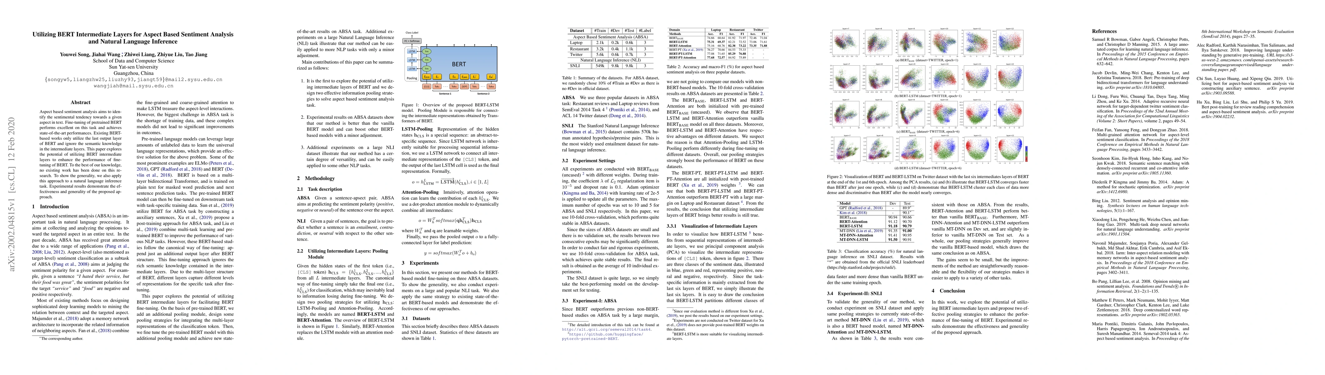 This paper investigates using BERT's intermediate layers for aspect-based sentiment analysis, showing improved performance over methods that only use the final output layer. It also applies the approach to natural language inference, demonstrating its effectiveness and generality.