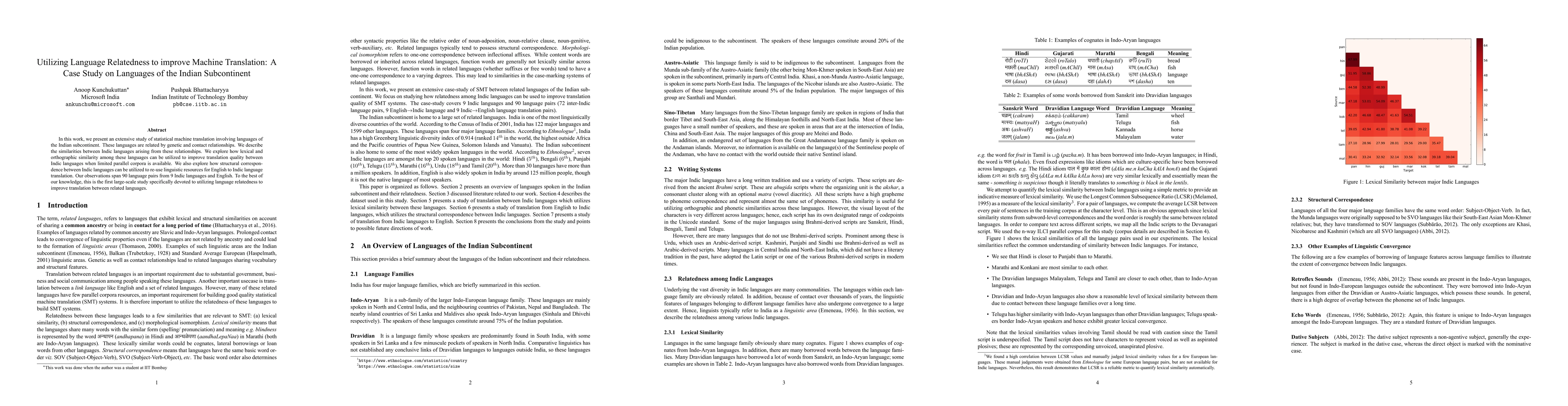 This study investigates leveraging lexical and orthographic similarities between related Indic languages to enhance machine translation quality, particularly in scenarios with limited parallel corpora. The research explores structural correspondences to reuse linguistic resources for English to Indic translations, based on observations from 90 language pairs across 9 Indic languages and English.