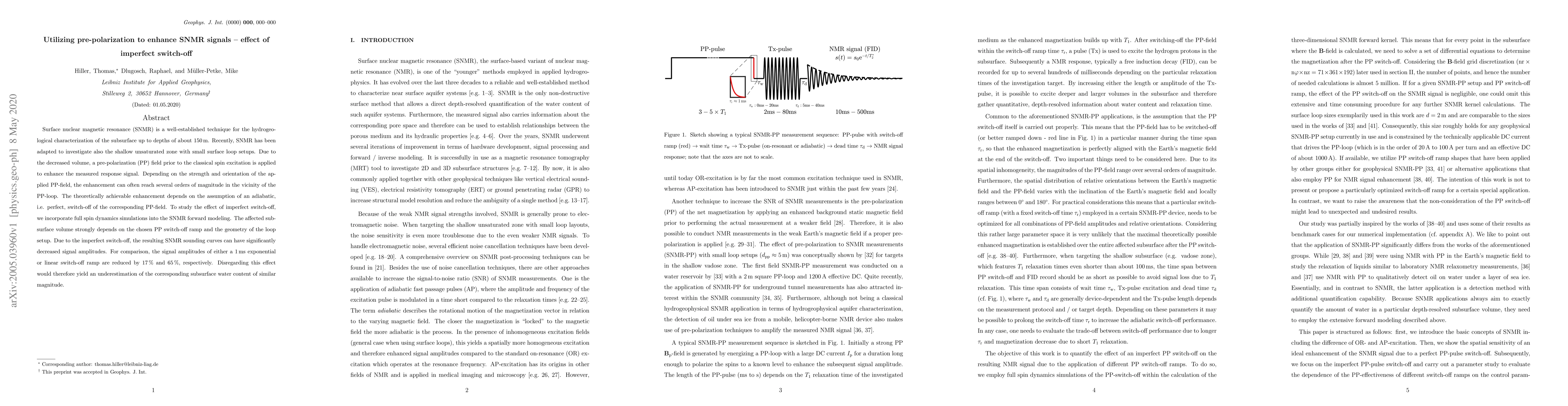 This paper investigates the impact of imperfect switch-off of a pre-polarization field on SNMR signal enhancement, revealing that such imperfections can significantly reduce signal amplitudes. The study uses full spin dynamics simulations to model the effect, showing that different switch-off ramps can lead to substantial signal attenuation, potentially underestimating subsurface water content.