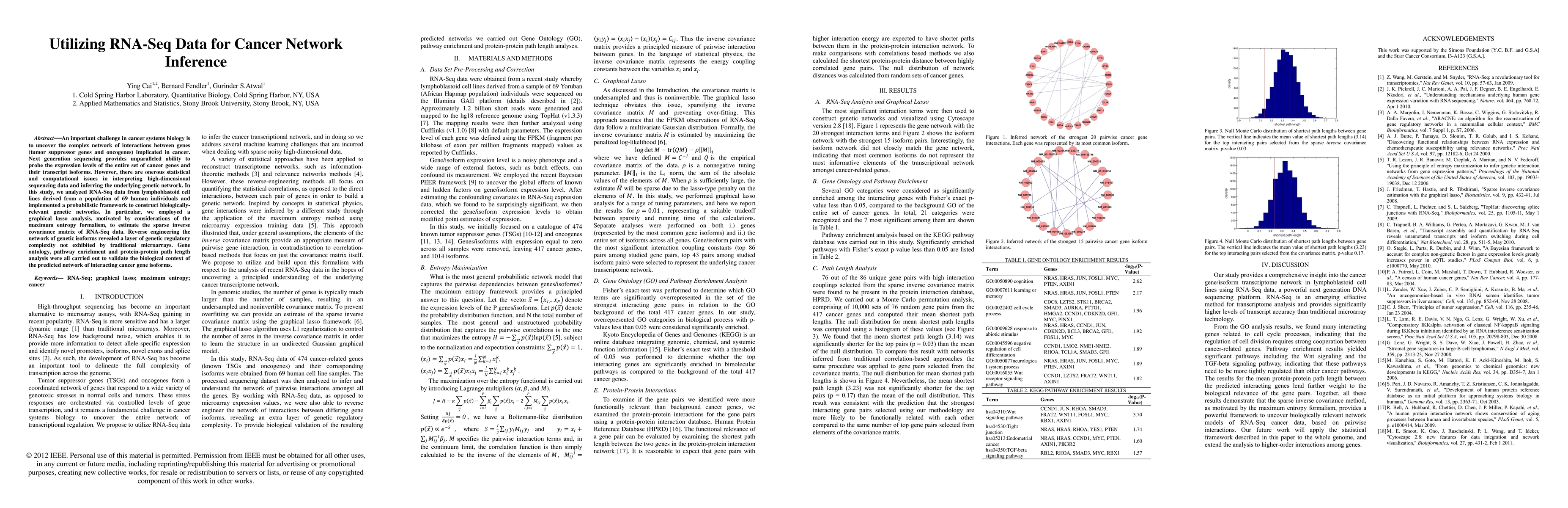 This study utilizes RNA-Seq data to infer complex gene interaction networks in cancer, employing a probabilistic graphical lasso framework to construct a sparse inverse covariance matrix. The inferred network is validated through gene ontology and pathway enrichment analyses, providing insights into the biological relevance of cancer gene interactions.