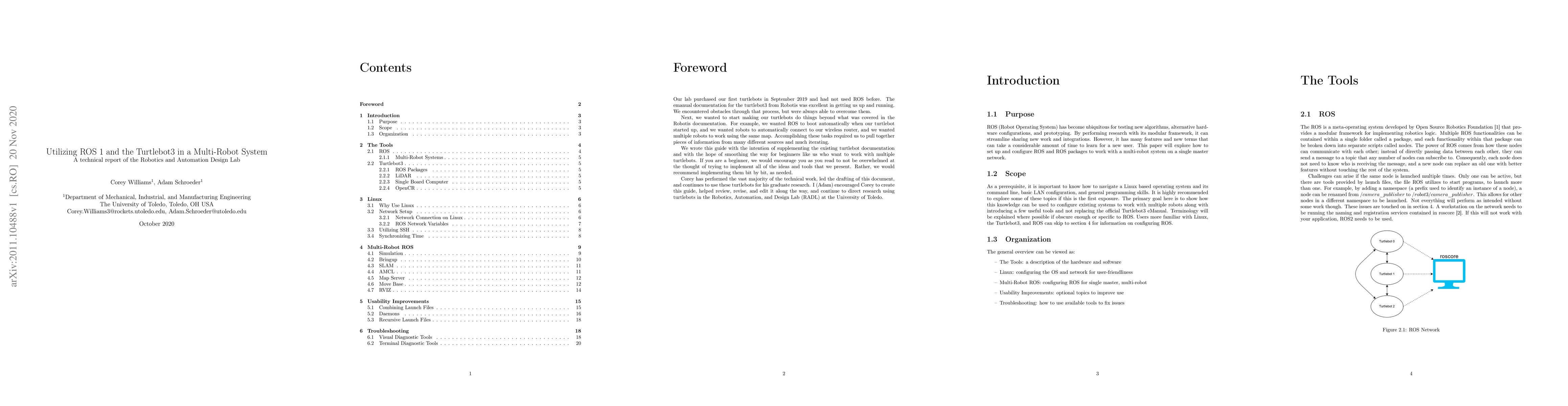 ROS (Robot Operating System) has become ubiquitous for testing new algorithms, alternative hardware configurations, and prototyping. By performing research with its modular framework, it can streamline sharing new work and integrations. However, it has many features and new terms that can take a considerable amount of time to learn for a new user. This paper will explore how to set up and configure ROS and ROS packages to work with a multi-robot system on a single master network.