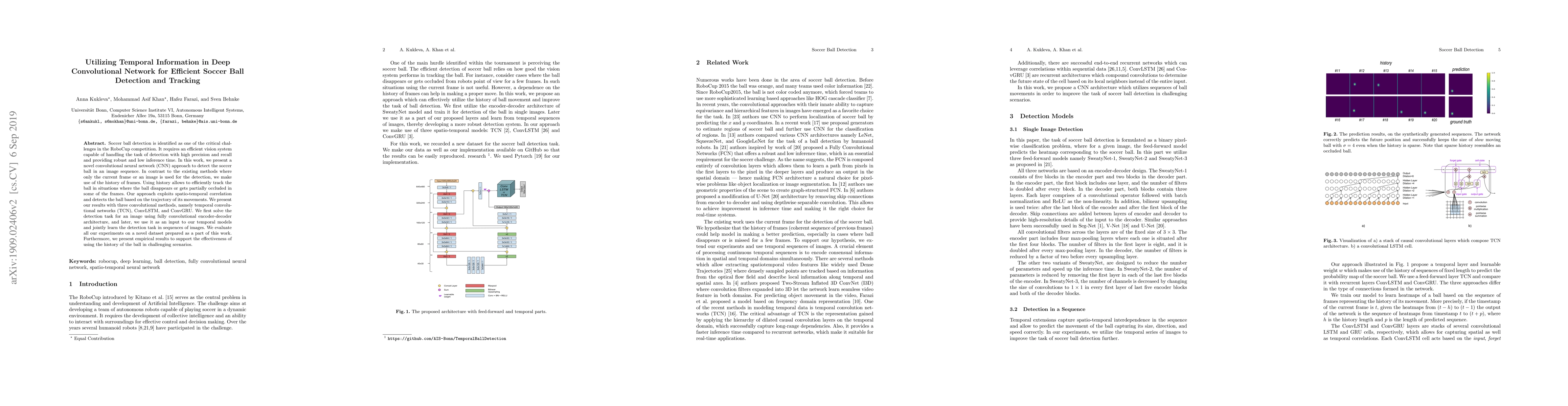 Soccer ball detection is identified as one of the critical challenges in the RoboCup competition. It requires an efficient vision system capable of handling the task of detection with high precision and recall and providing robust and low inference time. In this work, we present a novel convolutional neural network (CNN) approach to detect the soccer ball in an image sequence. In contrast to the existing methods where only the current frame or an image is used for the detection, we make use of the history of frames. Using history allows to efficiently track the ball in situations where the ball disappears or gets partially occluded in some of the frames. Our approach exploits spatio-temporal correlation and detects the ball based on the trajectory of its movements. We present our results with three convolutional methods, namely temporal convolutional networks (TCN), ConvLSTM, and ConvGRU. We first solve the detection task for an image using fully convolutional encoder-decoder architecture, and later, we use it as an input to our temporal models and jointly learn the detection task in sequences of images. We evaluate all our experiments on a novel dataset prepared as a part of this work. Furthermore, we present empirical results to support the effectiveness of using the history of the ball in challenging scenarios.