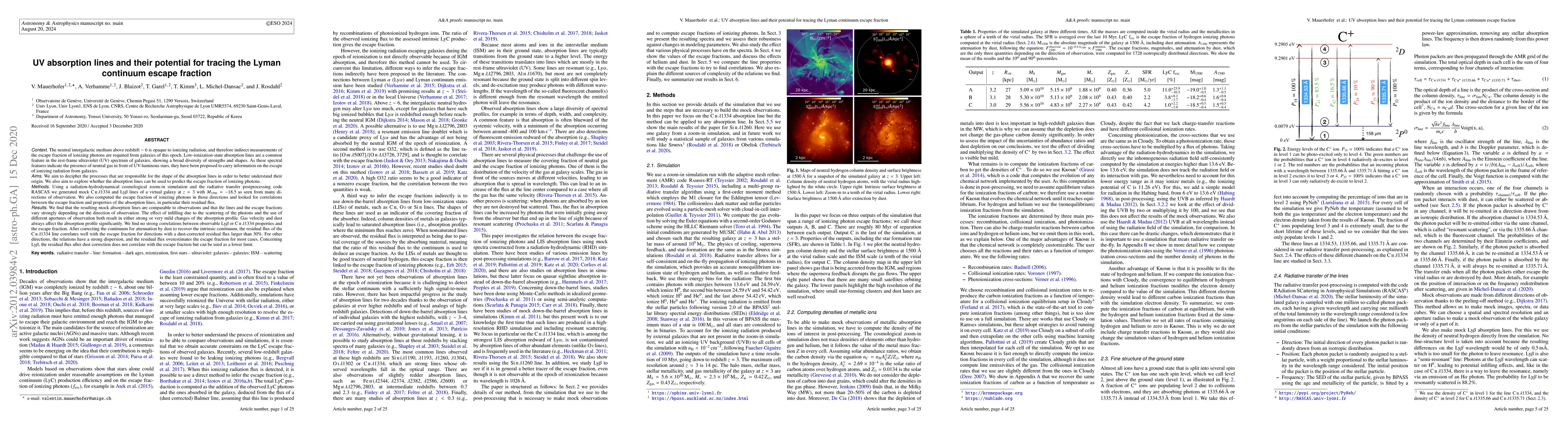 The neutral intergalactic medium above redshift 6 is opaque to ionizing radiation, therefore one needs indirect measurements of the escape fraction of ionizing photons from galaxies of this epoch. Low-ionization state absorption lines are a common feature in the spectrum of galaxies, showing a diversity of strengths and shapes. Since these lines indicate the presence of neutral gas in front of the stars, they have been proposed to carry information on the escape of ionizing radiation from galaxies. We study which processes are responsible for the shape of the absorption lines, to better understand their origin. We then explore whether the absorption lines can be used to predict the escape fractions. Using a radiation-hydrodynamical zoom-in simulation and the radiative transfer code RASCAS, we generate mock CII 1334 and LyB lines of a virtual galaxy at redshift 3 as seen from many directions of observation. We also compute the escape fraction of ionizing photons in those directions and look for correlations between the lines and the escape fractions. We find that the resulting mock absorption lines are comparable to observations and that the lines and the escape fractions vary strongly depending on the direction of observation. Gas velocity and dust always affect the absorption profile significantly. We find no strong correlations between observable LyB or CII 1334 and the escape fraction. After correcting the continuum for attenuation by dust to recover the intrinsic continuum, the residual flux of CII 1334 correlates well with the escape fraction for directions with a dust corrected residual flux larger than 30%. For other directions, the relations have a strong dispersion, and the residual flux overestimates the escape fraction for most cases. Concerning LyB, the residual flux after dust correction does not correlate with the escape fraction but can be used as a lower limit. (abridged)
