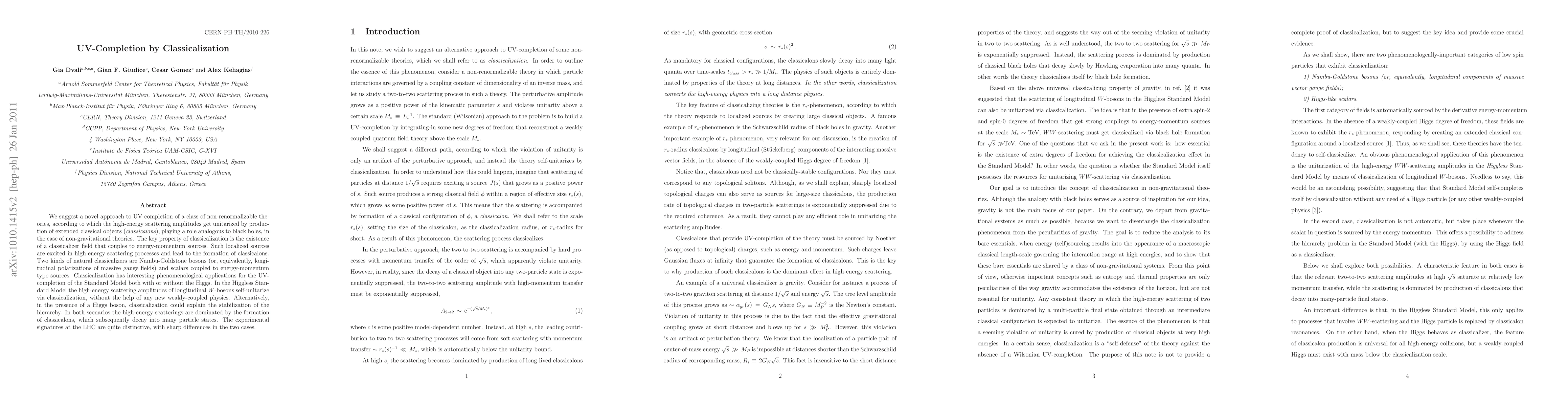 Researchers propose a new method for completing UV theories using classical objects called classicalons, which could explain phenomena like the Higgs boson stabilization in high-energy particle collisions.