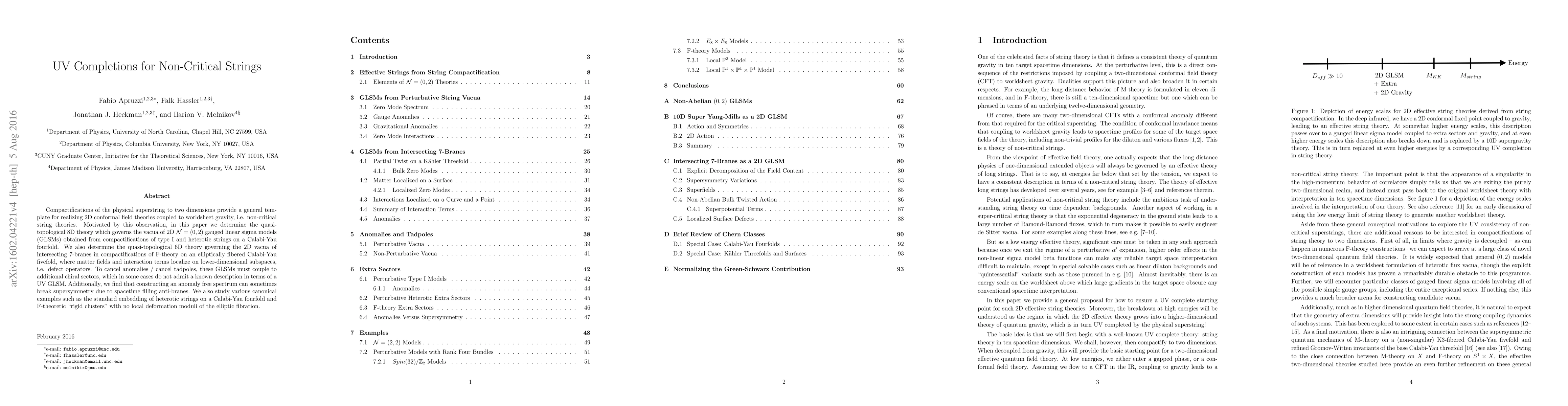 Compactifications of the physical superstring to two dimensions provide a general template for realizing 2D conformal field theories coupled to worldsheet gravity, i.e. non-critical string theories. Motivated by this observation, in this paper we determine the quasi-topological 8D theory which governs the vacua of 2D N = (0,2) gauged linear sigma models (GLSMs) obtained from compactifications of type I and heterotic strings on a Calabi-Yau fourfold. We also determine the quasi-topological 6D theory governing the 2D vacua of intersecting 7-branes in compactifications of F-theory on an elliptically fibered Calabi-Yau fivefold, where matter fields and interaction terms localize on lower-dimensional subspaces, i.e. defect operators. To cancel anomalies / cancel tadpoles, these GLSMs must couple to additional chiral sectors, which in some cases do not admit a known description in terms of a UV GLSM. Additionally, we find that constructing an anomaly free spectrum can sometimes break supersymmetry due to spacetime filling anti-branes. We also study various canonical examples such as the standard embedding of heterotic strings on a Calabi-Yau fourfold and F-theoretic "rigid clusters" with no local deformation moduli of the elliptic fibration.