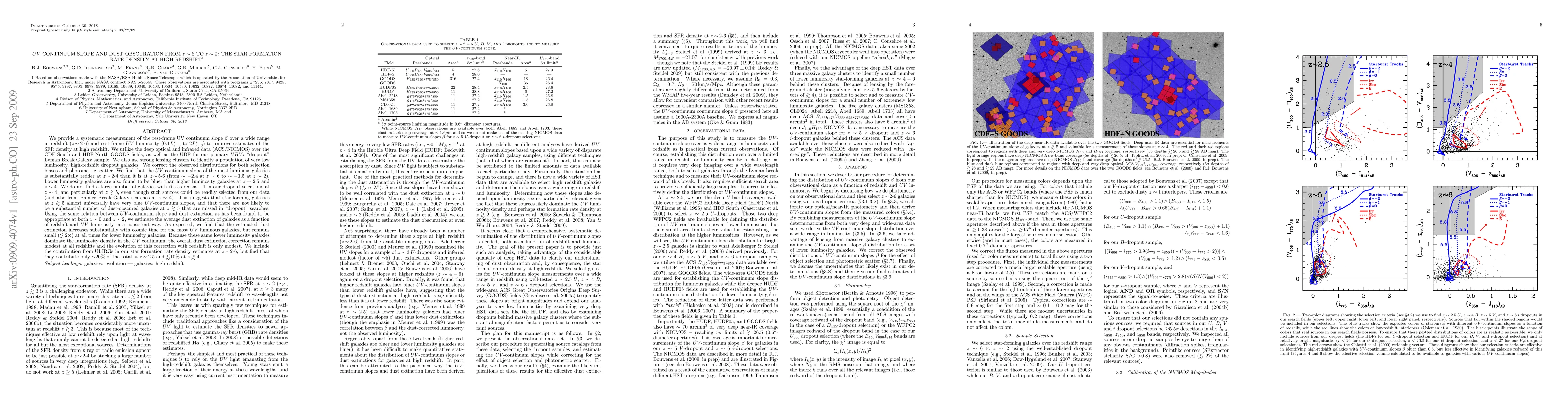 This research systematically measures the UV continuum slope beta across redshifts z~2-6 and finds that the most luminous galaxies at z~2-4 have a redder slope than those at z~5-6. It concludes that high-redshift star-forming galaxies exhibit very blue UV slopes, indicating minimal dust obscuration, and that lower luminosity galaxies dominate the UV luminosity density with modest overall dust extinction.