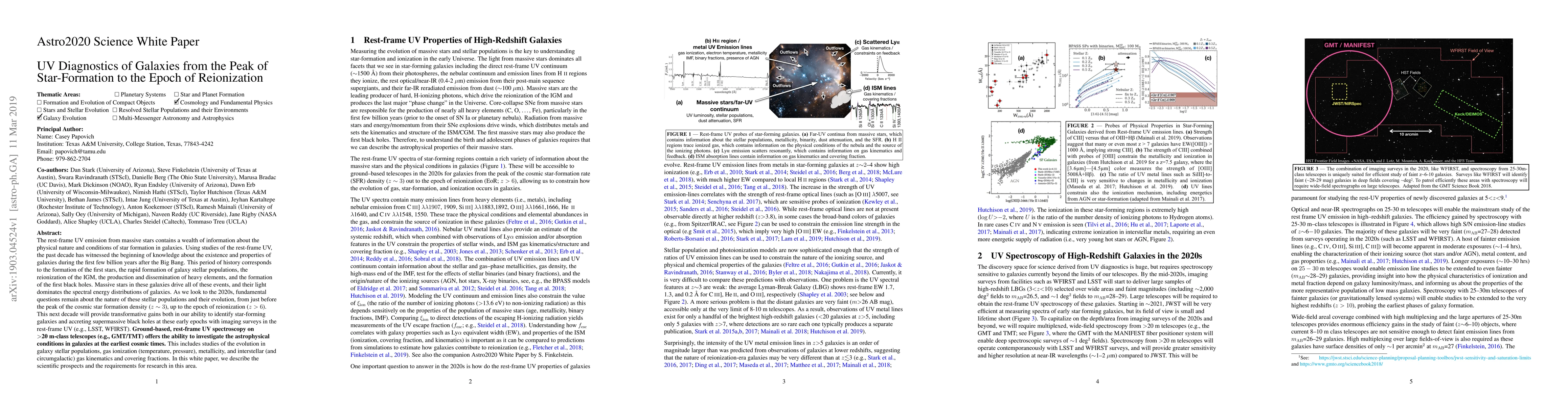 This paper explores the use of rest-frame UV emission from massive stars to understand the formation and evolution of galaxies from the peak of star-formation to the epoch of reionization. It highlights the potential of upcoming imaging surveys and ground-based UV spectroscopy to reveal the astrophysical conditions and evolution of early galaxies.