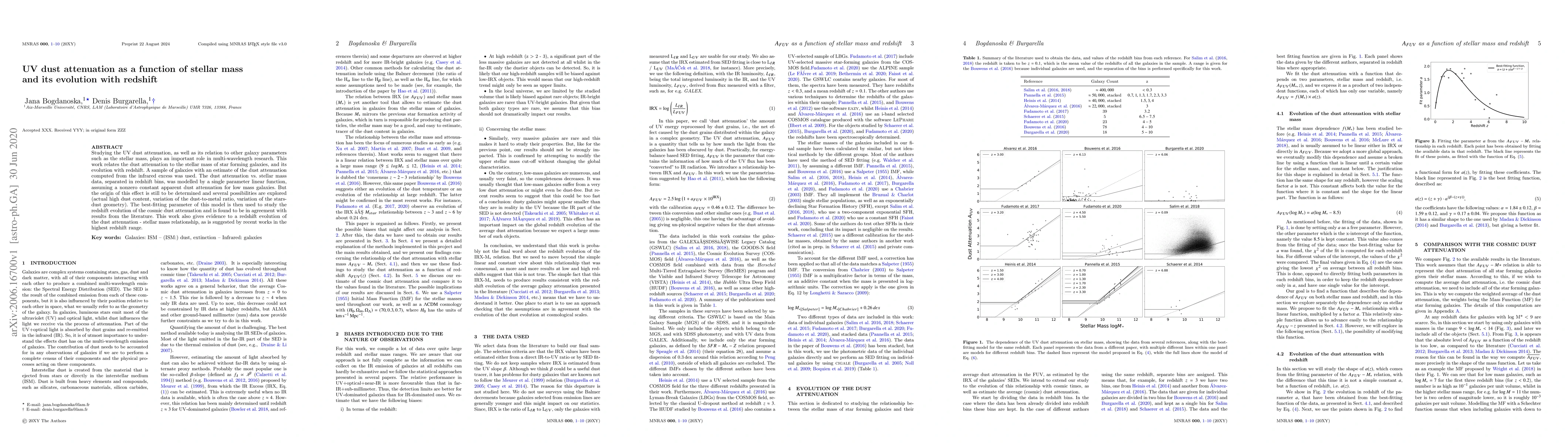 This paper investigates the relationship between UV dust attenuation and stellar mass in star-forming galaxies, finding a linear correlation that evolves with redshift. The study suggests a nonzero constant dust attenuation for low-mass galaxies, with potential origins including high dust content or variations in dust-to-metal ratio. The findings align with literature on cosmic dust attenuation evolution.