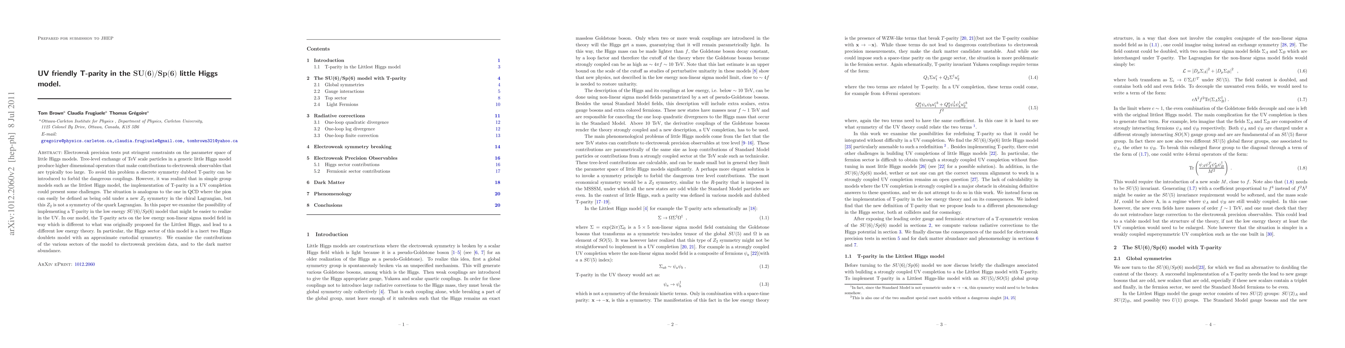 Electroweak precision tests put stringent constraints on the parameter space of little Higgs models. Tree-level exchange of TeV scale particles in a generic little Higgs model produce higher dimensional operators that make contributions to electroweak observables that are typically too large. To avoid this problem a discrete symmetry dubbed T-parity can be introduced to forbid the dangerous couplings. However, it was realized that in simple group models such as the littlest Higgs model, the implementation of T-parity in a UV completion could present some challenges. The situation is analogous to the one in QCD where the pion can easily be defined as being odd under a new $Z_2$ symmetry in the chiral Lagrangian, but this $Z_2$ is not a symmetry of the quark Lagrangian. In this paper we examine the possibility of implementing a T-parity in the low energy $SU(6)/Sp(6)$ model that might be easier to realize in the UV. In our model, the T-parity acts on the low energy non-linear sigma model field in way which is different to what was originally proposed for the Littlest Higgs, and lead to a different low energy theory. In particular, the Higgs sector of this model is a inert two Higgs doublets model with an approximate custodial symmetry. We examine the contributions of the various sectors of the model to electroweak precision data, and to the dark matter abundance.