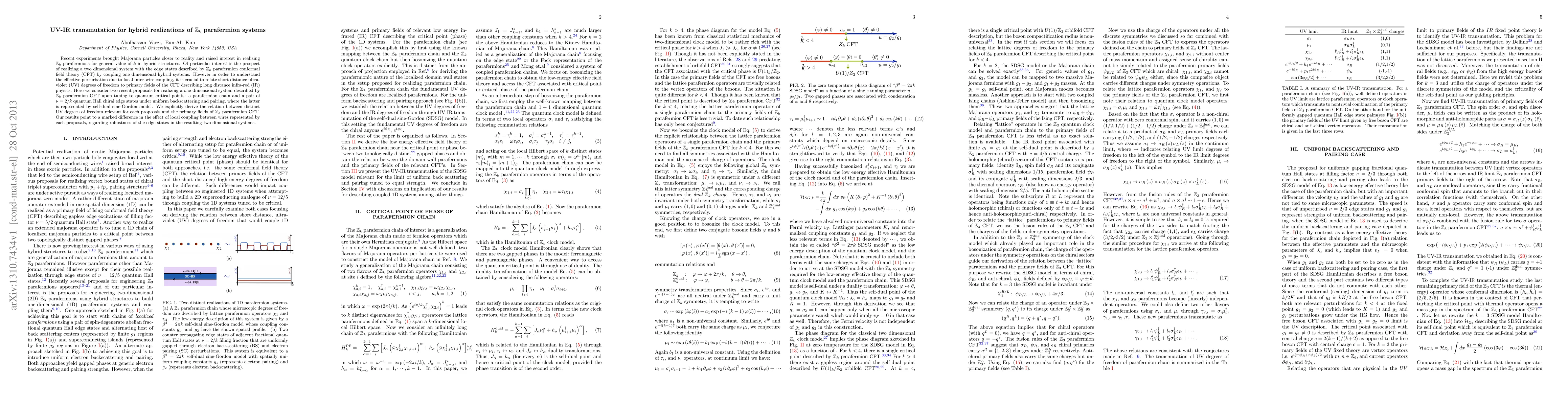 Recent experiments brought Majorana particles closer to reality and raised interest in realizing $\mathbb{Z}_k$ parafermions for general value of $k$ in hybrid structures. Of particular interest is the prospect of realizing a two dimensional system with the edge states described by $\mathbb{Z}_k$ parafermion conformal field theory (CFT) by coupling one dimensional hybrid systems. However in order to understand the effective perturbation due to local inter-wire coupling, it is crucial to relate short distance ultra-violet (UV) degrees of freedom to primary fields of the CFT describing long distance infra-red (IR) physics. Here we consider two recent proposals for realizing a one dimensional system described by $\mathbb{Z}_k$ parafermion CFT upon tuning to quantum critical points: a parafermion chain and a pair of $\nu=2/k$ quantum Hall chiral edge states under uniform backscattering and pairing, where the latter is represented by self-dual sine-Gordon model. We explicitly derive the relation between distinct UV degrees of freedom relevant for each proposals and the primary fields of $\mathbb{Z}_3$ parafermion CFT. Our results point to a marked difference in the effect of local coupling between wires represented by each proposals, regarding robustness of the edge states in the resulting two dimensional systems.