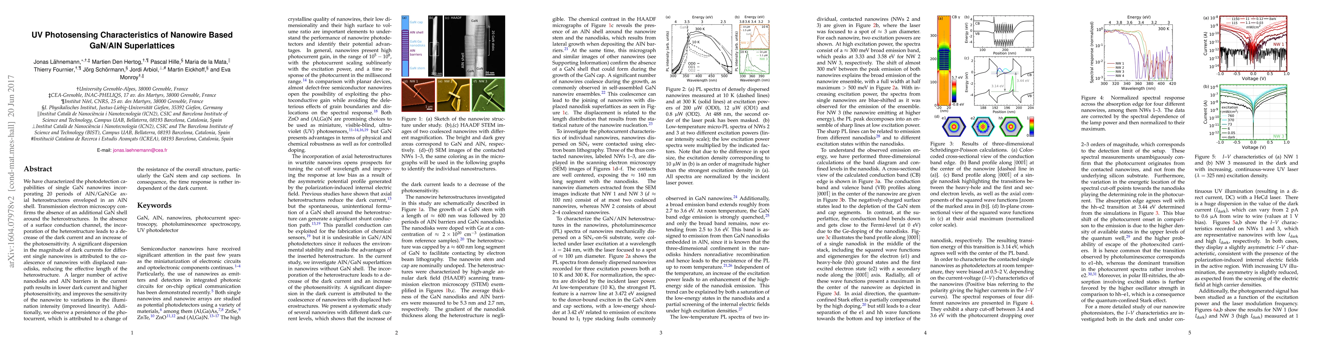 This study investigates the UV photosensing characteristics of GaN/AlN superlattices in GaN nanowires, finding that the incorporation of AlN/GaN heterostructures reduces dark current and enhances photosensitivity, while a persistence in photocurrent is due to resistance changes in the GaN sections, leading to an independent time response.