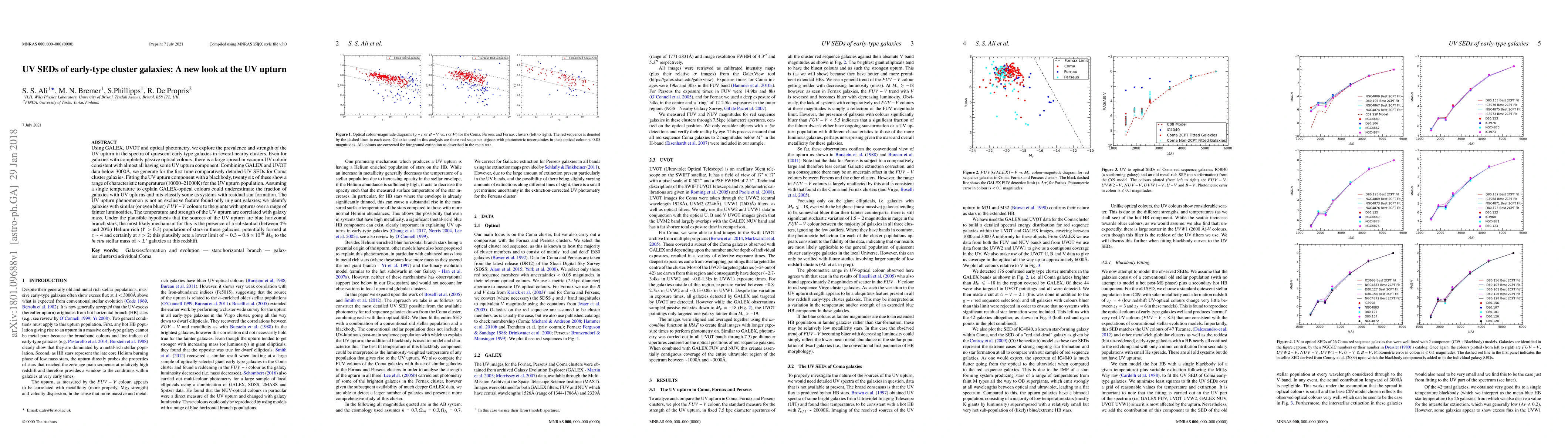 Using GALEX, UVOT and optical photometry, we explore the prevalence and strength of the UV-upturn in the spectra of quiescent early type galaxies in several nearby clusters. Even for galaxies with completely passive optical colours, there is a large spread in vacuum UV colour consistent with almost all having some UV upturn component. Combining GALEX and UVOT data below 3000\AA, we generate for the first time comparatively detailed UV SEDs for Coma cluster galaxies. Fitting the UV upturn component with a blackbody, twenty six of these show a range of characteristic temperatures (10000--21000K) for the UV upturn population. Assuming a single temperature to explain GALEX-optical colours could underestimate the fraction of galaxies with UV upturns and mis-classify some as systems with residual star formation. The UV upturn phenomenon is not an exclusive feature found only in giant galaxies; we identify galaxies with similar (or even bluer) $FUV-V$ colours to the giants with upturns over a range of fainter luminosities. The temperature and strength of the UV upturn are correlated with galaxy mass. Under the plausible hypothesis that the sources of the UV upturn are blue horizontal branch stars, the most likely mechanism for this is the presence of a substantial (between 4\% and 20\%) Helium rich ($Y > 0.3$) population of stars in these galaxies, potentially formed at $z\sim 4$ and certainly at $z>2$; this plausibly sets a lower limit of $\sim {\rm 0.3 - 0.8} \times 10^{10}$ $M_{\odot}$ to the {\it in situ} stellar mass of $\sim L^*$ galaxies at this redshift.