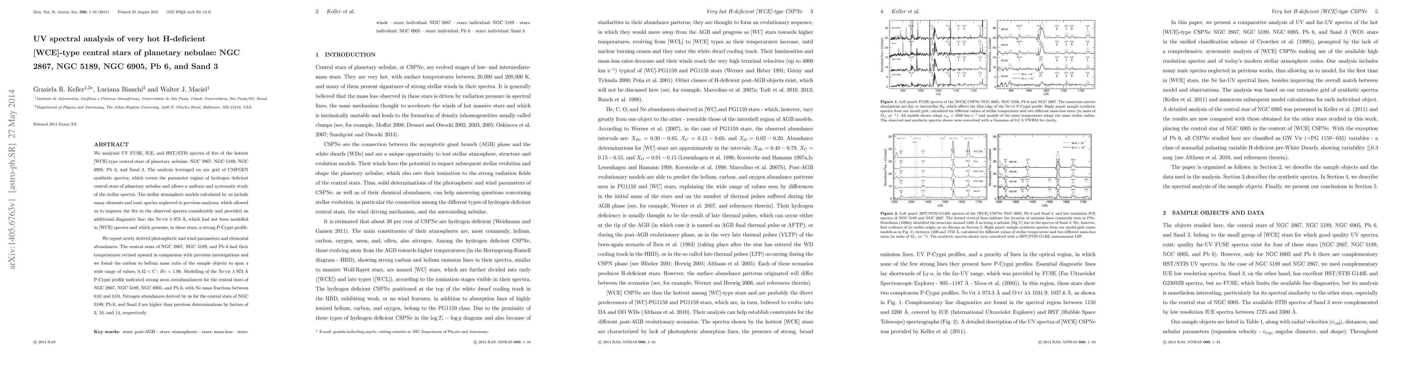 Researchers analyzed the UV spectra of five very hot central stars in planetary nebulae to improve our understanding of their atmospheres, finding strong neon overabundances and varying carbon-to-helium ratios.