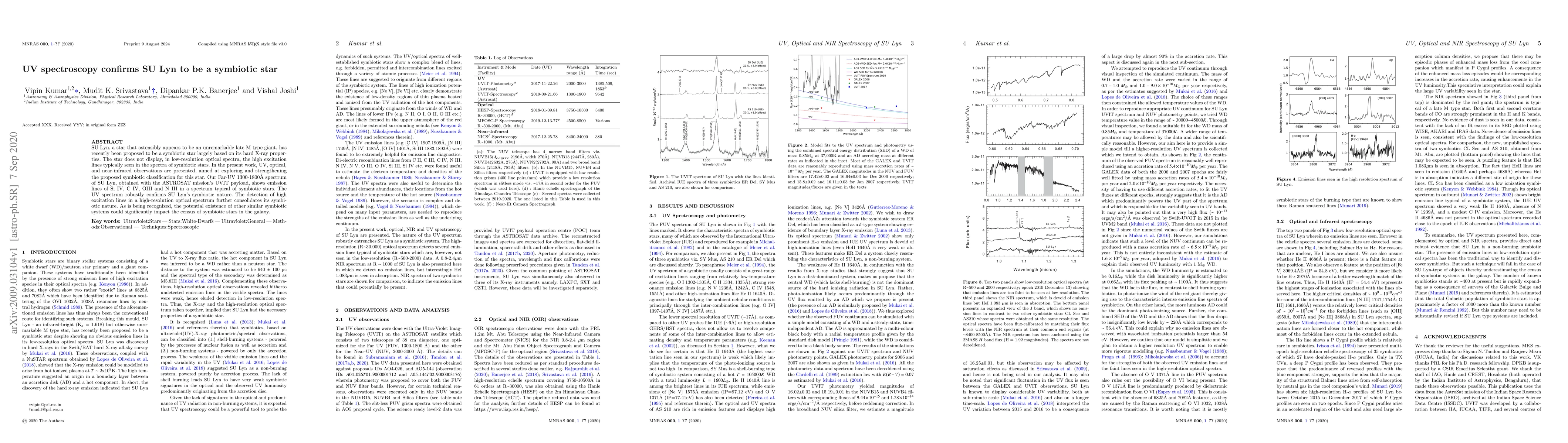 UV spectroscopy from the ASTROSAT mission's UVIT payload confirms SU Lyn as a symbiotic star by revealing characteristic emission lines of Si IV, C IV, OIII, and N III. This finding, along with high-resolution optical spectra, solidifies its classification as a symbiotic star.