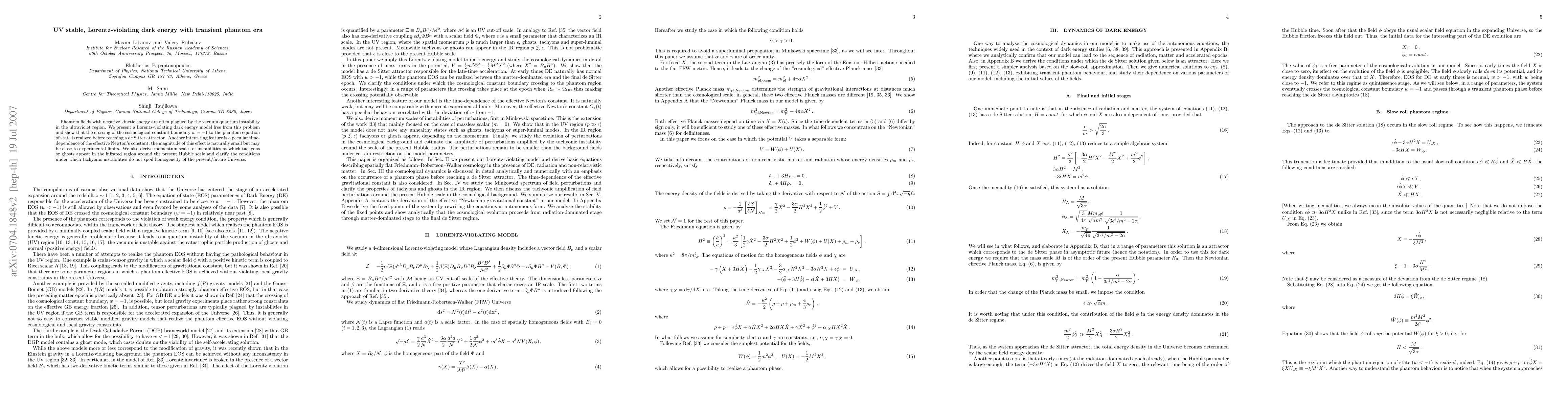 This paper proposes a Lorentz-violating dark energy model that avoids ultraviolet quantum instability, allowing for a transient phantom era before reaching a de Sitter attractor. It also examines the time-dependence of the effective Newton's constant and conditions under which tachyonic instabilities do not threaten cosmic homogeneity.