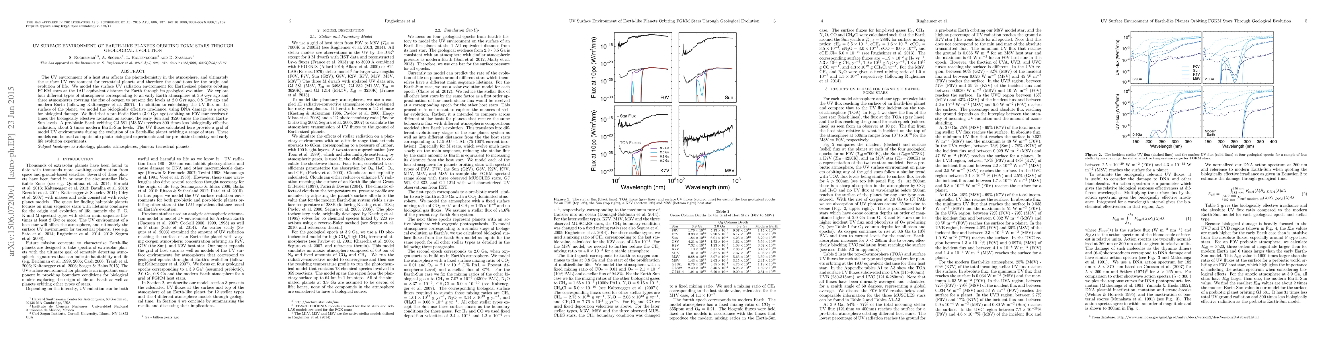 This paper models the surface UV radiation environment for Earth-sized planets orbiting FGKM stars throughout geological evolution, finding significant differences in UV flux based on star type and planetary atmosphere. The study highlights that a pre-biotic Earth around an F0V star receives much higher biologically effective radiation compared to one around a GJ 581 (M3.5V) star.