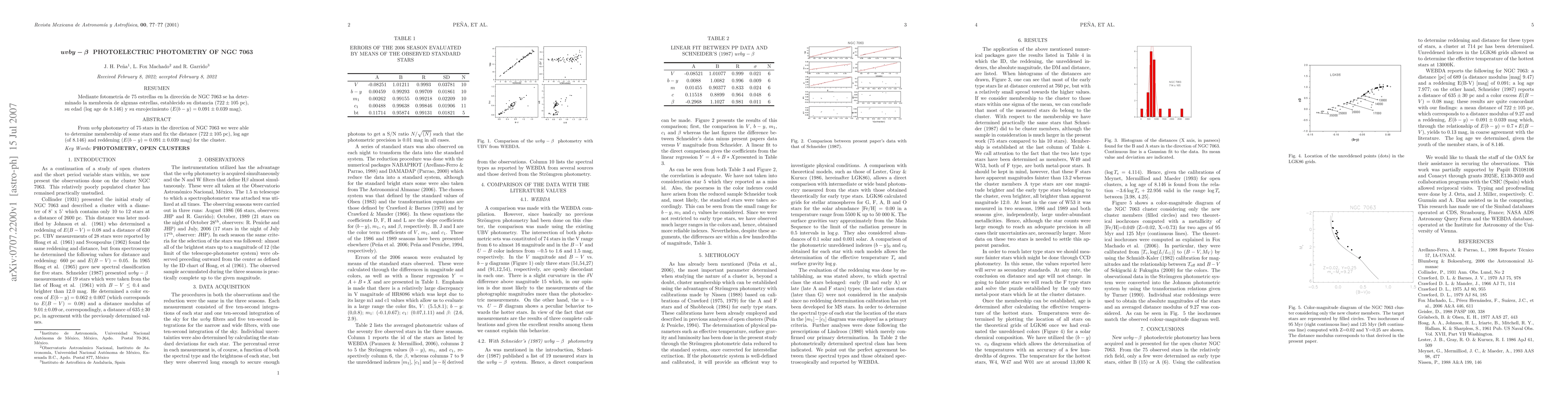 This study uses uvby-beta photoelectric photometry to analyze 75 stars in NGC 7063, determining cluster membership, a distance of 722 ± 105 pc, a log age of 8.146, and reddening E(b-y) of 0.091 ± 0.039 mag. The findings provide insights into the cluster's characteristics.