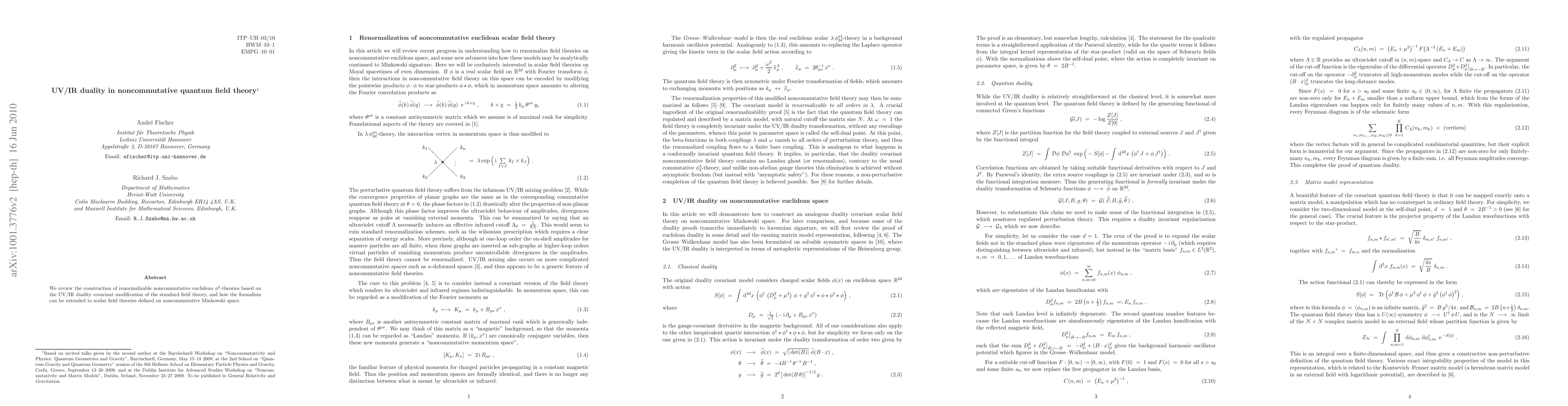 Summary: This paper reviews the construction of renormalizable noncommutative Euclidean φ(4)-theories, highlighting the UV/IR duality and extending the formalism to noncommutative Minkowski space for scalar field theories.