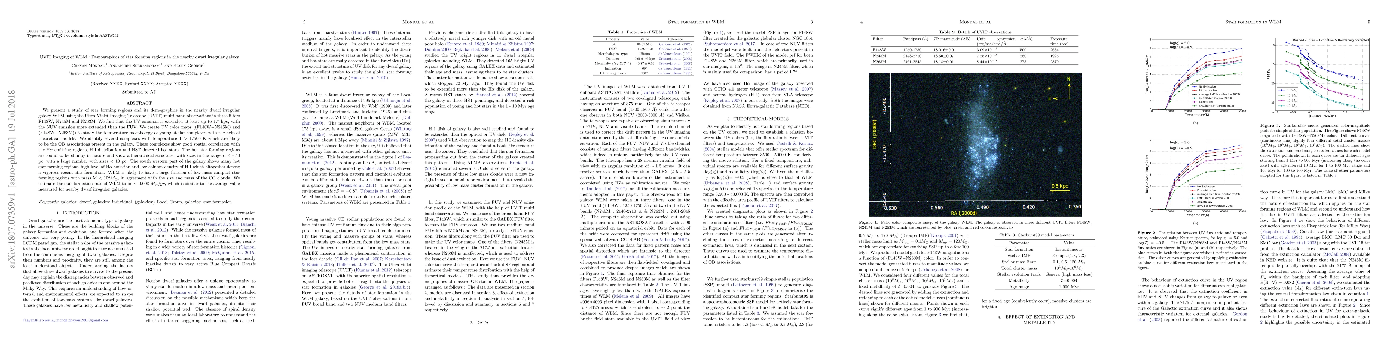 This study uses UVIT observations to analyze star-forming regions in the dwarf irregular galaxy WLM, revealing extended UV emission and identifying OB associations. The star formation rate is estimated to be $\sim$ 0.008 $M_{\odot}/yr$, consistent with other nearby dwarf galaxies.