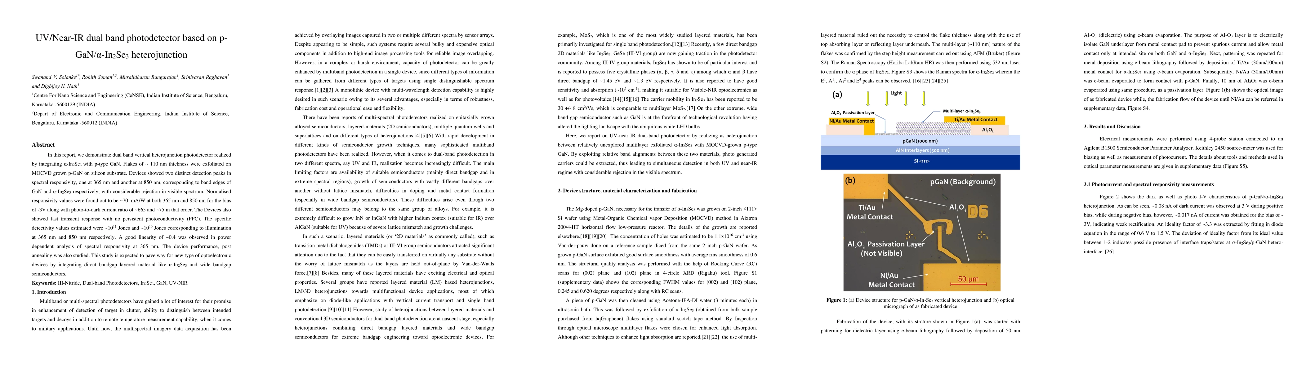 Researchers created a dual-band photodetector using p-GaN and In2Se3, detecting light at 365nm and 850nm with high responsivity and fast response times.