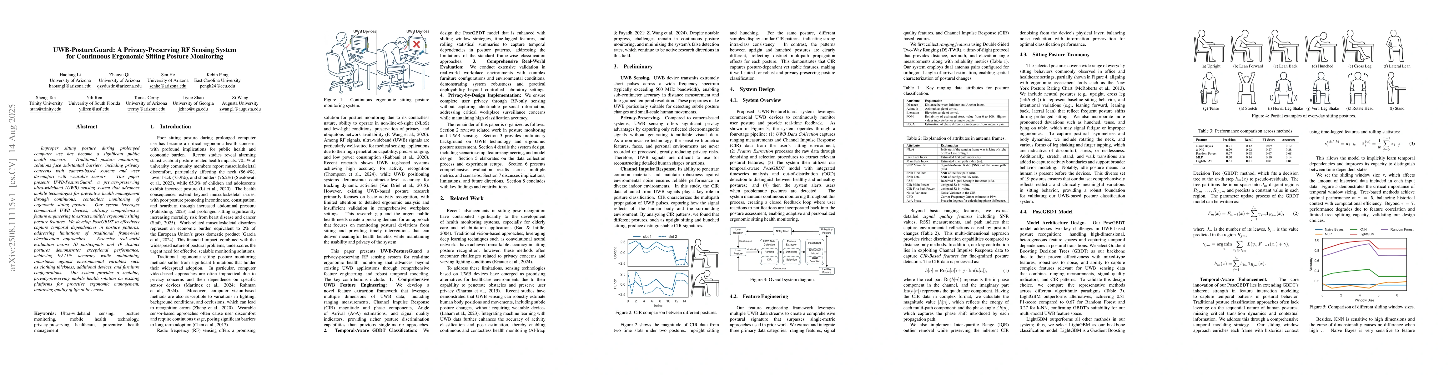 Improper sitting posture during prolonged computer use has become a significant public health concern. Traditional posture monitoring solutions face substantial barriers, including privacy concerns with camera-based systems and user discomfort with wearable sensors. This paper presents UWB-PostureGuard, a privacy-preserving ultra-wideband (UWB) sensing system that advances mobile technologies for preventive health management through continuous, contactless monitoring of ergonomic sitting posture. Our system leverages commercial UWB devices, utilizing comprehensive feature engineering to extract multiple ergonomic sitting posture features. We develop PoseGBDT to effectively capture temporal dependencies in posture patterns, addressing limitations of traditional frame-wise classification approaches. Extensive real-world evaluation across 10 participants and 19 distinct postures demonstrates exceptional performance, achieving 99.11% accuracy while maintaining robustness against environmental variables such as clothing thickness, additional devices, and furniture configurations. Our system provides a scalable, privacy-preserving mobile health solution on existing platforms for proactive ergonomic management, improving quality of life at low costs.