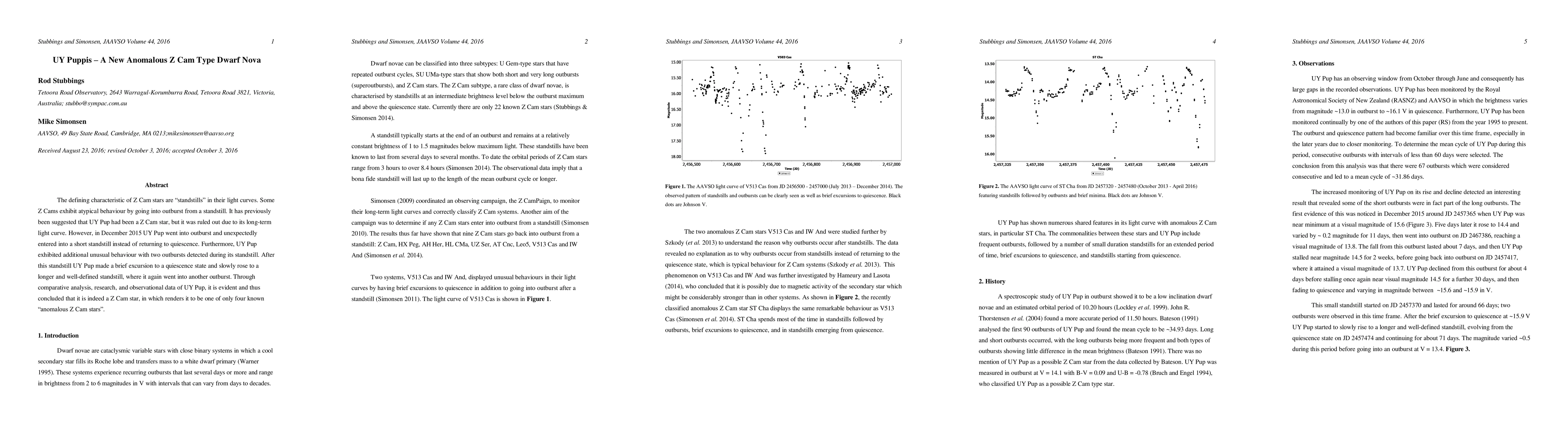 A new star, UY Puppis, has been found to exhibit unusual behavior typical of Z Cam stars, which were initially thought to only go into quiescence.