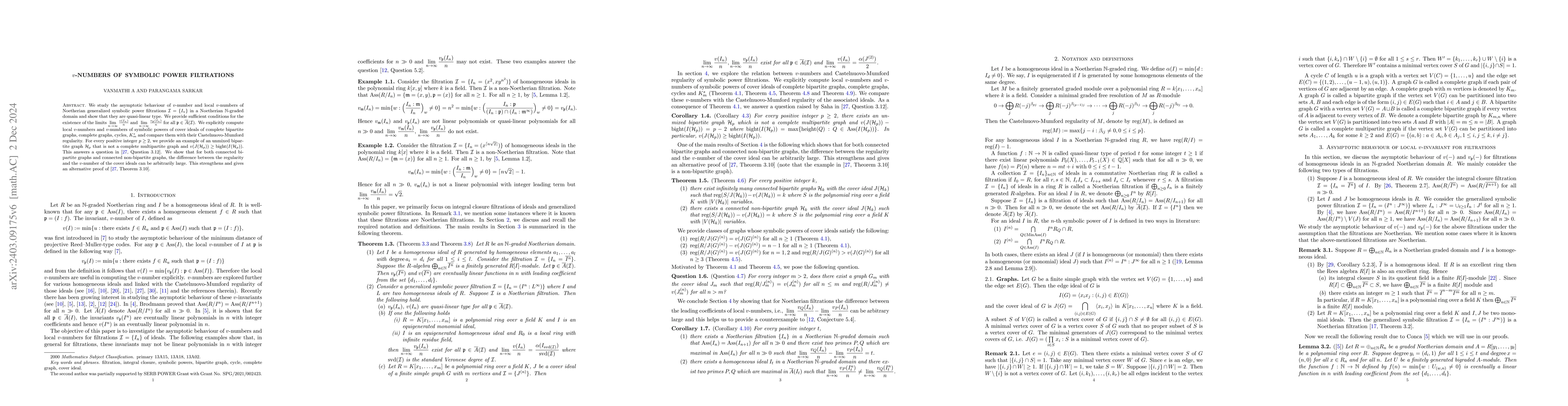 This paper investigates the asymptotic behavior of $v$-numbers and local $v$-numbers in Noetherian symbolic power filtrations, proving their quasi-linear nature. It also computes specific $v$-numbers for cover ideals of various graph types and compares them to their regularity, providing counterexamples to conjectures and strengthening previous results.