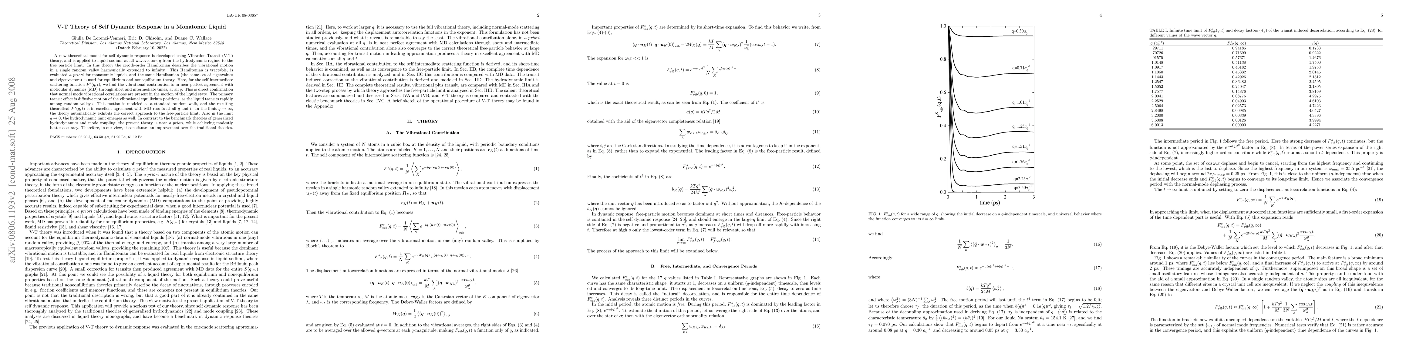 The paper develops a new Vibration-Transit (V-T) theory model for self dynamic response in monatomic liquids, showing near-perfect agreement with molecular dynamics simulations for liquid sodium. The model's success confirms the presence of normal mode vibrational correlations in liquid states and provides an improved theoretical framework over traditional generalized hydrodynamics and mode coupling theories.
