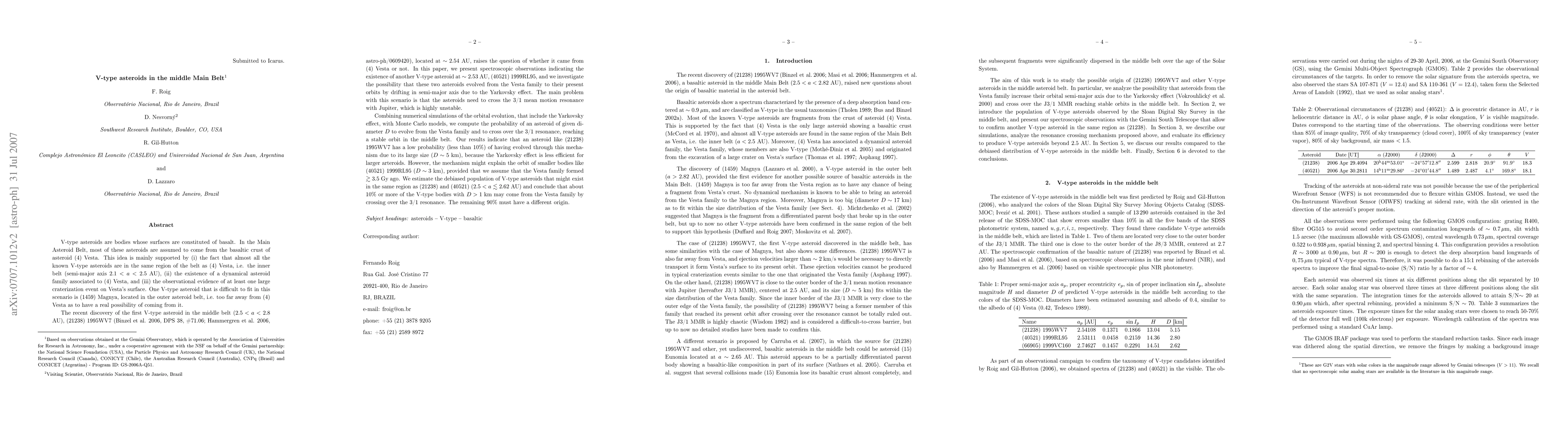 This paper investigates the origins of V-type asteroids in the middle Main Belt, specifically (21238) 1995WV7 and (40521) 1999RL95, and explores the possibility of their evolution from the Vesta family via the Yarkovsky effect. The study finds that while larger asteroids like (21238) are unlikely to have evolved this way, smaller bodies like (40521) may, suggesting that up to 10% of V-type asteroids larger than 1 km could originate from the Vesta family.