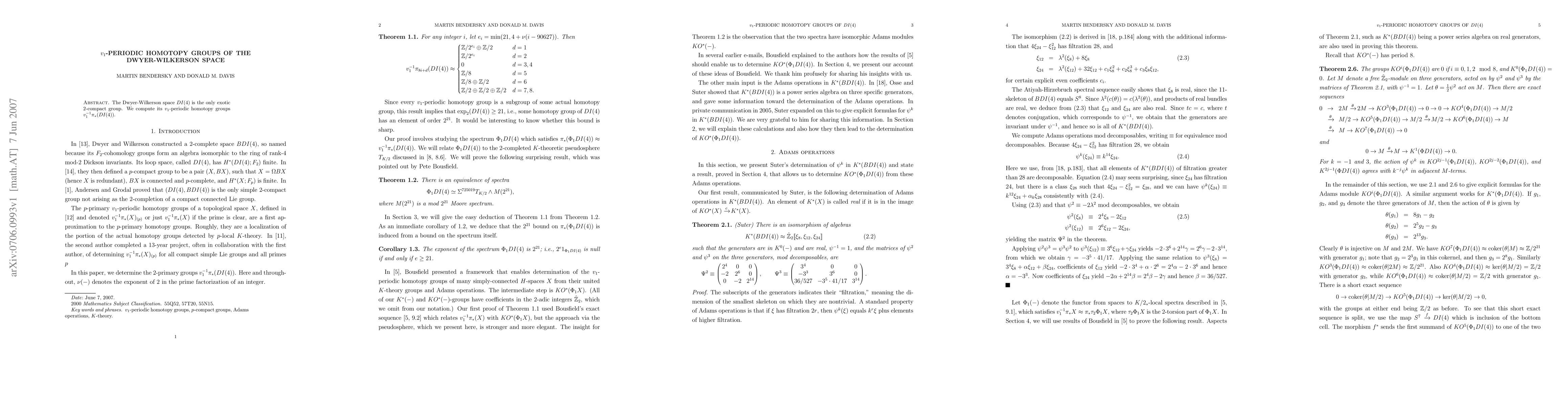 This paper computes the v1-periodic homotopy groups of the Dwyer-Wilkerson space DI(4), which stands as the unique exotic 2-compact group, thereby providing significant insights into its higher-dimensional structure.