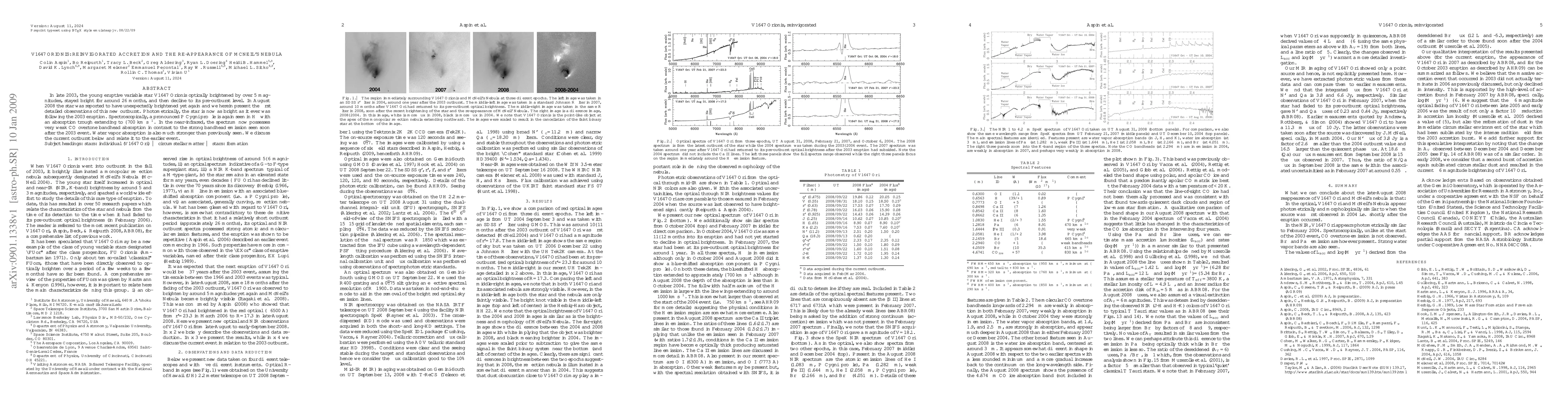 In late 2003, the young eruptive variable star V1647 Orionis optically brightened by over 5 magnitudes, stayed bright for around 26 months, and then decline to its pre-outburst level. In August 2008 the star was reported to have unexpectedly brightened yet again and we herein present the first detailed observations of this new outburst. Photometrically, the star is now as bright as it ever was following the 2003 eruption. Spectroscopically, a pronounced P Cygni profile is again seen in Halpha with an absorption trough extending to -700 km/s. In the near-infrared, the spectrum now possesses very weak CO overtone bandhead absorption in contrast to the strong bandhead emission seen soon after the 2003 event. Water vapor absorption is also much stronger than previously seen. We discuss the current outburst below and relate it to the earlier event.