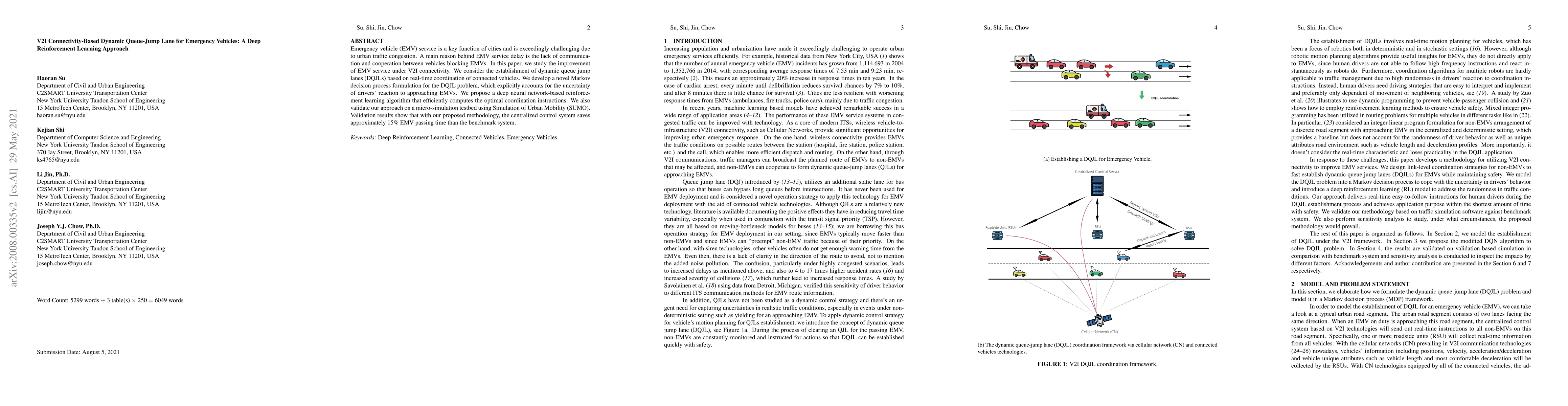 This paper proposes a deep reinforcement learning approach to optimize the dynamic queue-jump lane (DQJL) for emergency vehicles (EMVs) using vehicle-to-infrastructure (V2I) connectivity, reducing EMV service delays by approximately 15% compared to traditional methods, as demonstrated through micro-simulation using SUMO.