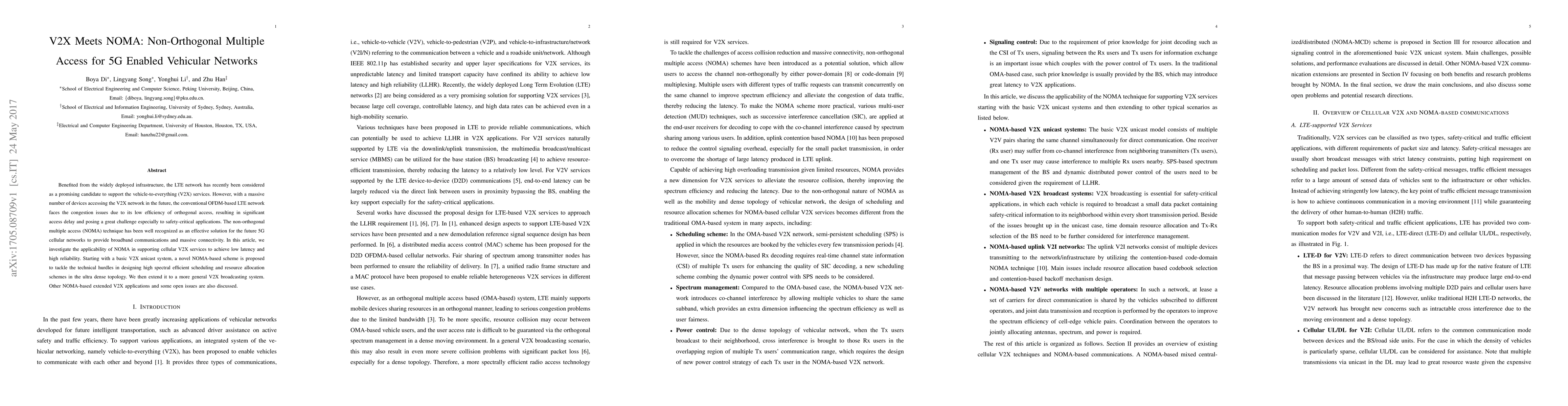 This paper explores the integration of non-orthogonal multiple access (NOMA) with 5G-enabled vehicle-to-everything (V2X) networks to address congestion and latency issues in future dense vehicular communications. A novel NOMA-based scheme is proposed to enhance spectral efficiency and reliability for both unicast and broadcasting V2X services.