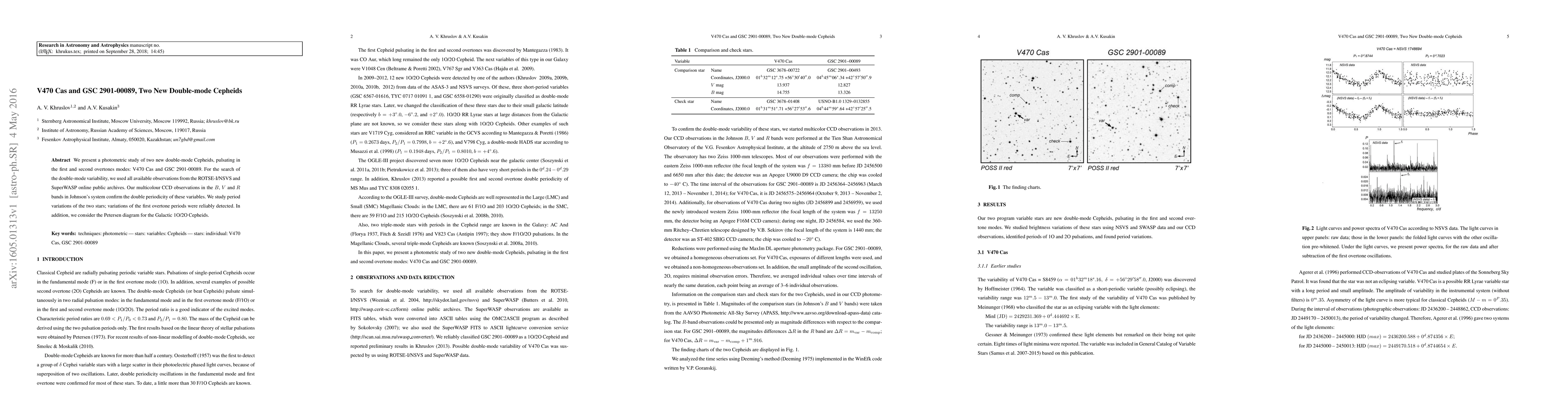 We present a photometric study of two new double-mode Cepheids, pulsating in the first and second overtones modes: V470 Cas and GSC 2901-00089. For the search of the double-mode variability, we used all available observations from the ROTSE-I/NSVS and SuperWASP online public archives. Our multicolour CCD observations in the B, V and R bands in Johnson's system confirm the double periodicity of these variables. We study period variations of the two stars; variations of the first overtone periods were reliably detected. In addition, we consider the Petersen diagram for the Galactic 1O/2O Cepheids.