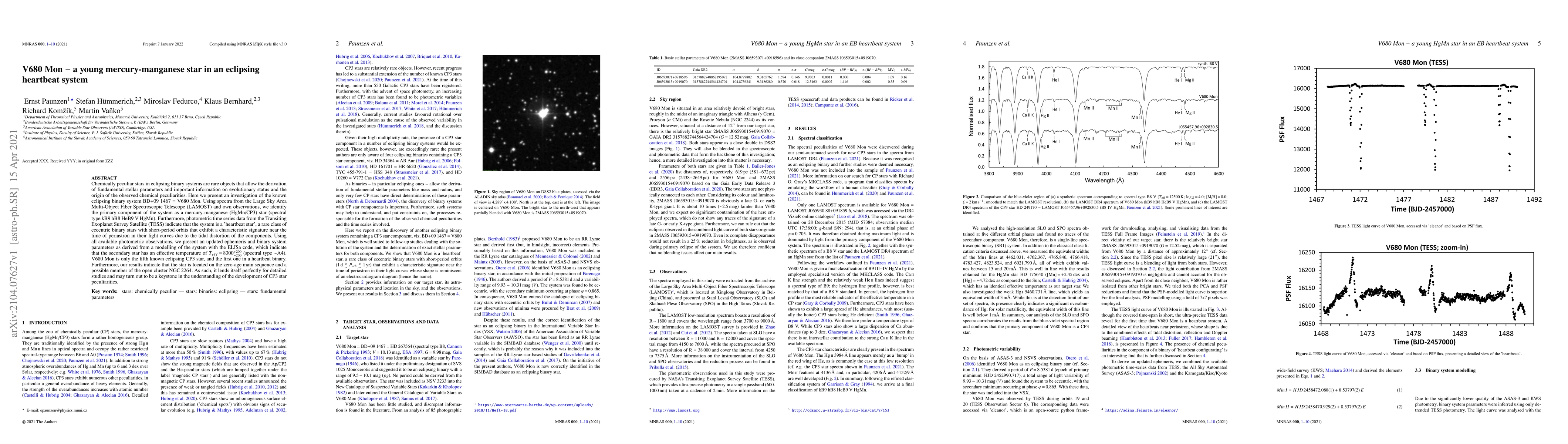 V680 Mon, identified as a young mercury-manganese star in an eclipsing heartbeat binary system, is the fifth known eclipsing CP3 star and the first in a heartbeat configuration. Detailed spectroscopic and photometric analysis reveals its primary component as a HgMn star and the secondary as an A4 star, providing insights into the star's evolutionary status and potential membership in the NGC 2264 cluster.