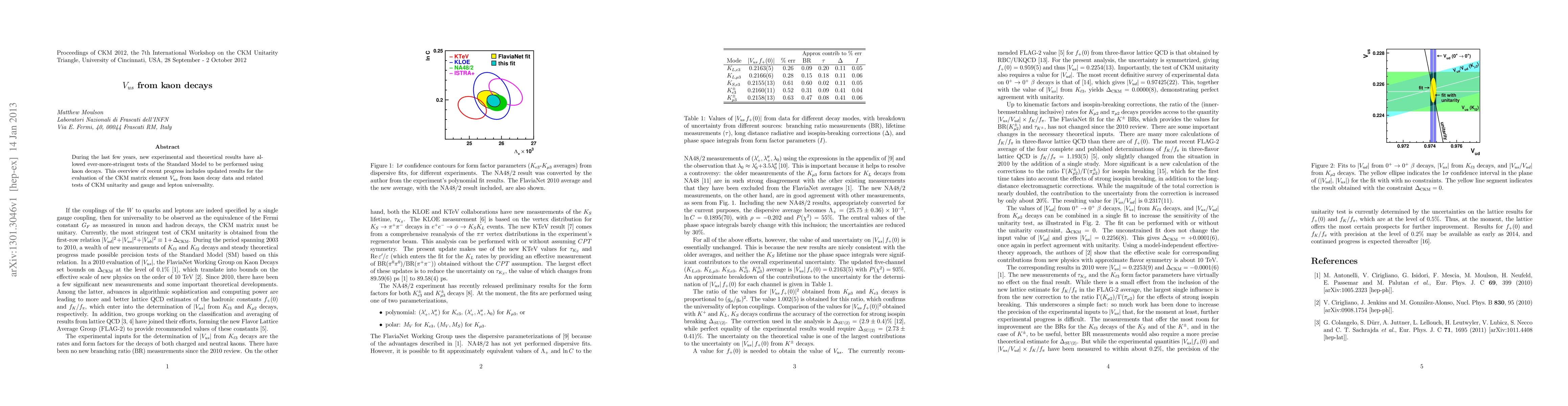 This paper reviews recent advancements in determining the CKM matrix element V_us from kaon decay data, providing updated evaluations and testing CKM unitarity and gauge and lepton universality within the Standard Model.