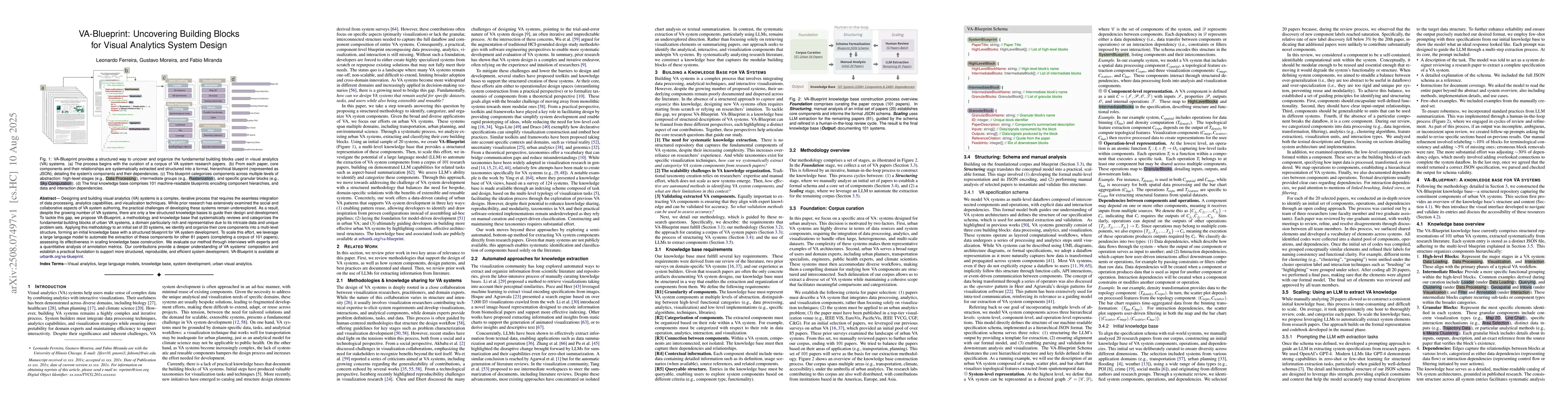 Designing and building visual analytics (VA) systems is a complex, iterative process that requires the seamless integration of data processing, analytics capabilities, and visualization techniques. While prior research has extensively examined the social and collaborative aspects of VA system authoring, the practical challenges of developing these systems remain underexplored. As a result, despite the growing number of VA systems, there are only a few structured knowledge bases to guide their design and development. To tackle this gap, we propose VA-Blueprint, a methodology and knowledge base that systematically reviews and categorizes the fundamental building blocks of urban VA systems, a domain particularly rich and representative due to its intricate data and unique problem sets. Applying this methodology to an initial set of 20 systems, we identify and organize their core components into a multi-level structure, forming an initial knowledge base with a structured blueprint for VA system development. To scale this effort, we leverage a large language model to automate the extraction of these components for other 81 papers (completing a corpus of 101 papers), assessing its effectiveness in scaling knowledge base construction. We evaluate our method through interviews with experts and a quantitative analysis of annotation metrics. Our contributions provide a deeper understanding of VA systems' composition and establish a practical foundation to support more structured, reproducible, and efficient system development. VA-Blueprint is available at https://urbantk.org/va-blueprint.