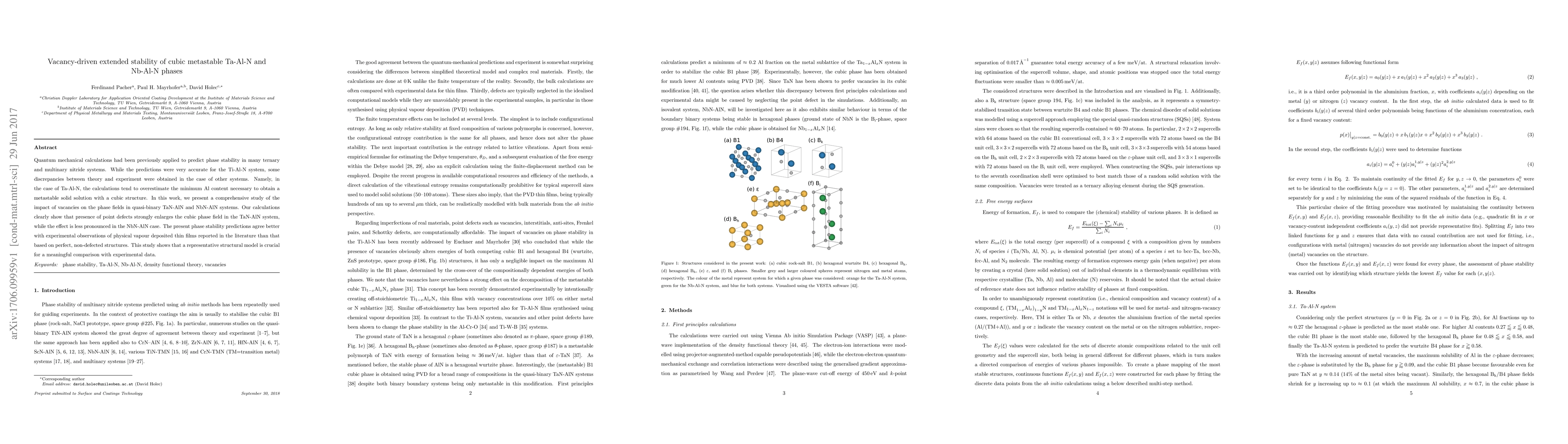 This study investigates the impact of vacancies on the stability of cubic metastable Ta-Al-N and Nb-Al-N phases using quantum mechanical calculations. It finds that vacancies significantly enlarge the cubic phase field in Ta-Al-N, improving agreement with experimental observations, highlighting the importance of structural models in phase stability predictions.