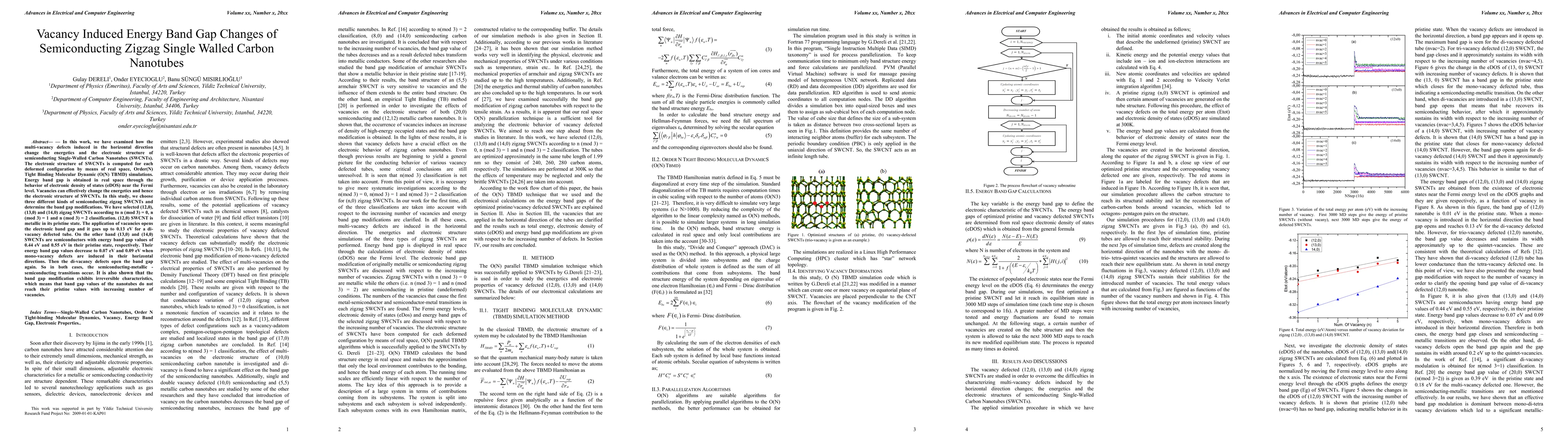 This study investigates how multi-vacancy defects along the horizontal axis modify the electronic structure and energy band gap of semiconducting zigzag single-walled carbon nanotubes (SWCNTs). Using O(N) TBMD simulations, it finds that vacancies can induce semiconducting-metallic-semiconducting transitions and lead to irreversible changes in the band gap.